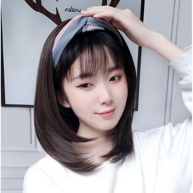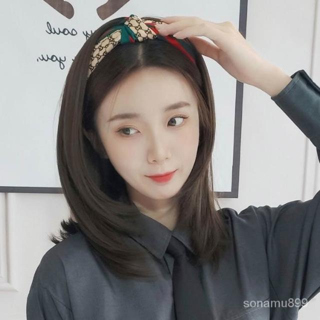 髮箍假髮一體女 中長髮 u型半頭套 網紅氣質 減齡鎖骨髮 自然全頭套式 假髮 蓬鬆 髮飾 增髮量 自然 遮白髮