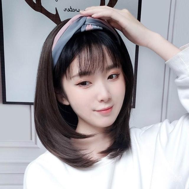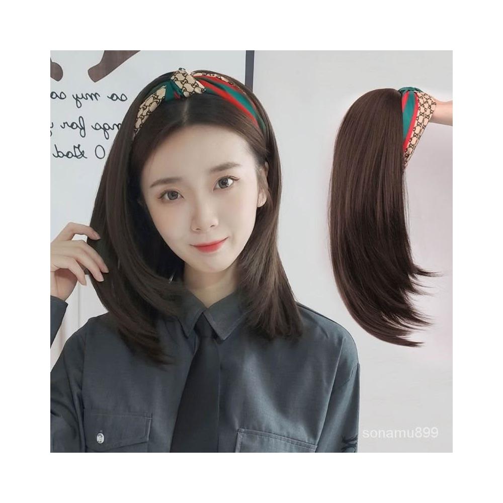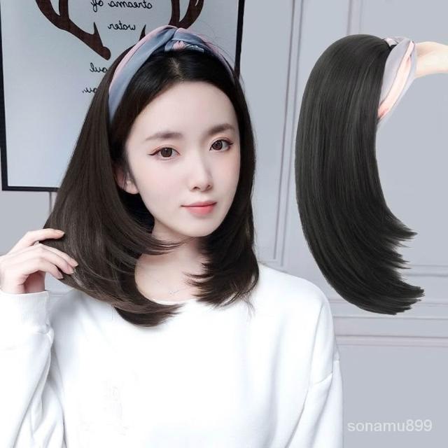 髮箍假髮一體女 中長髮 u型半頭套 網紅氣質 減齡鎖骨髮 自然全頭套式 假髮 蓬鬆 髮飾 增髮量 自然 遮白髮