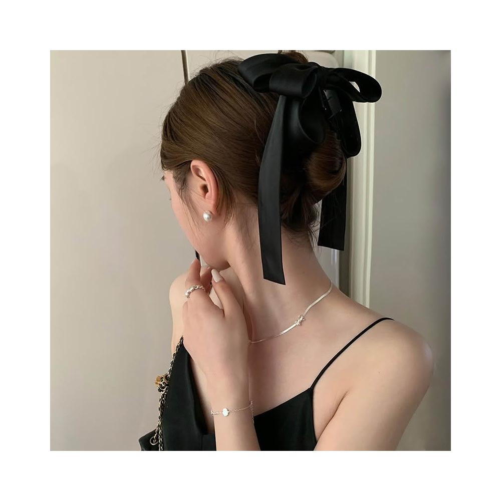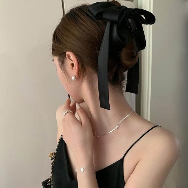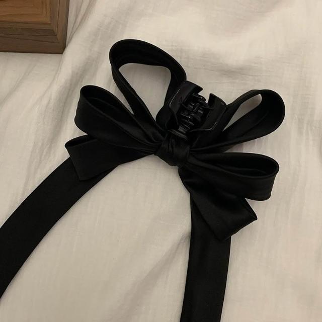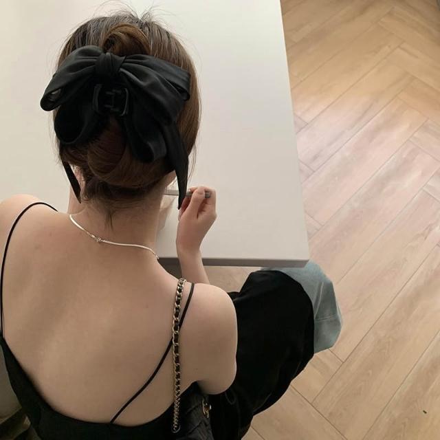 Imanchen氣質緞面飄帶蝴蝶結抓夾 蝴蝶結抓夾 緞布抓夾 鯊魚夾 抓夾 髮夾 髮飾