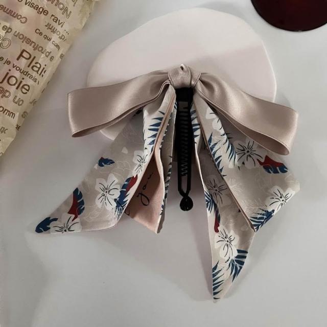 小香風絲巾蝴蝶結香蕉夾 蝴蝶結髮夾 小香風髮夾 絲巾髮夾 香蕉夾 抓夾 髮夾 日韓髮飾