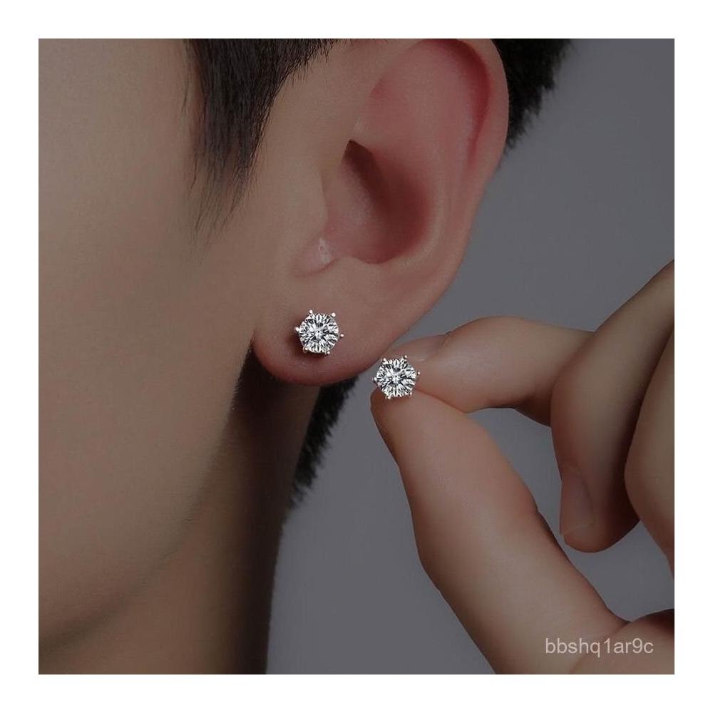 閤金耳飾鋯石 簡約男士耳釘男 百搭高級感六爪爆閃睡覺免摘防過敏耳釘 男士耳釘 ins耳釘 耳環 耳釘男 耳釘