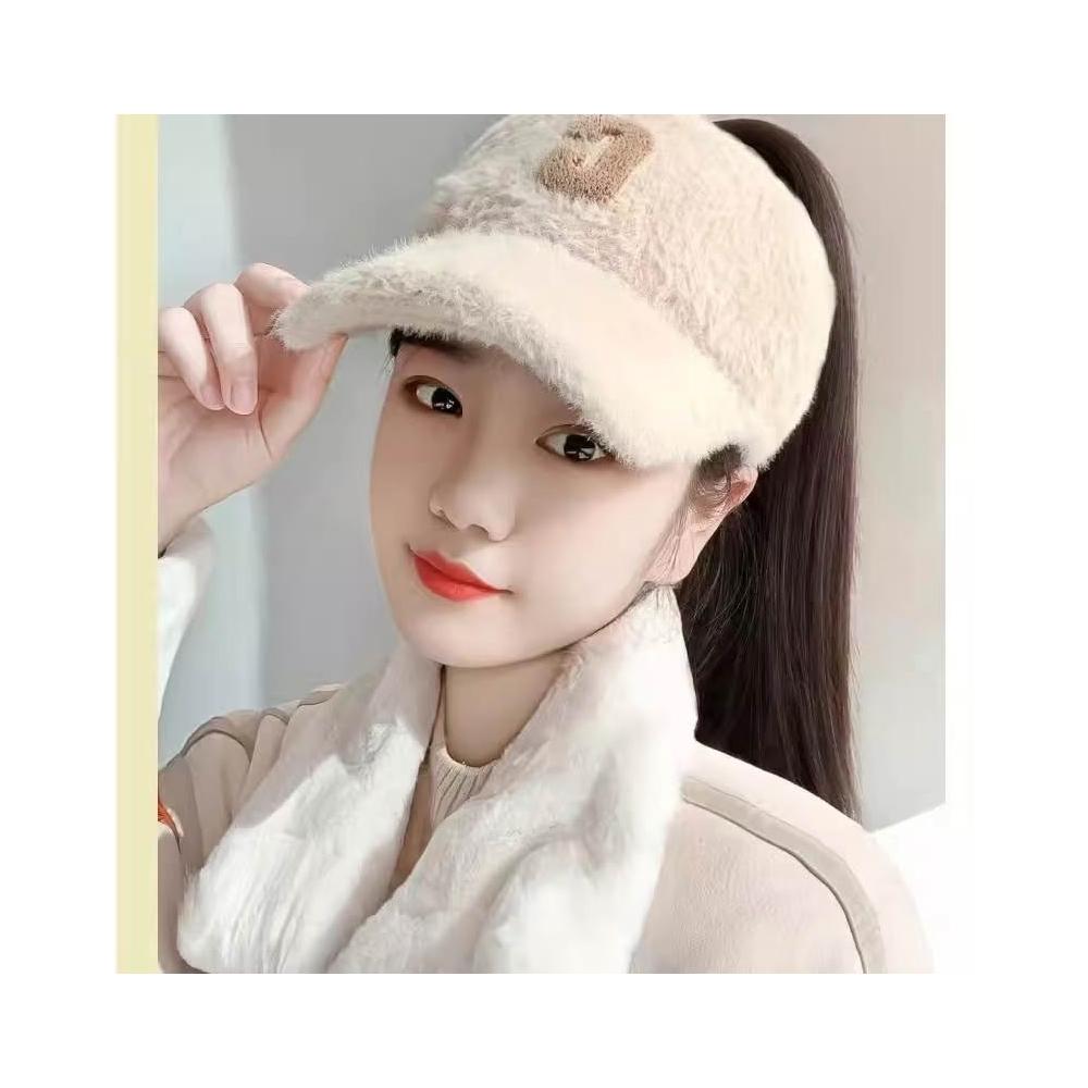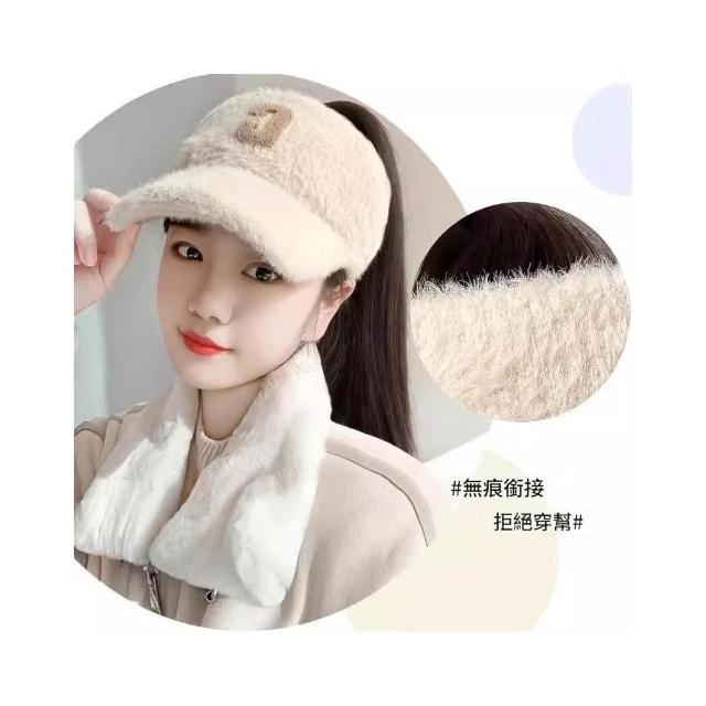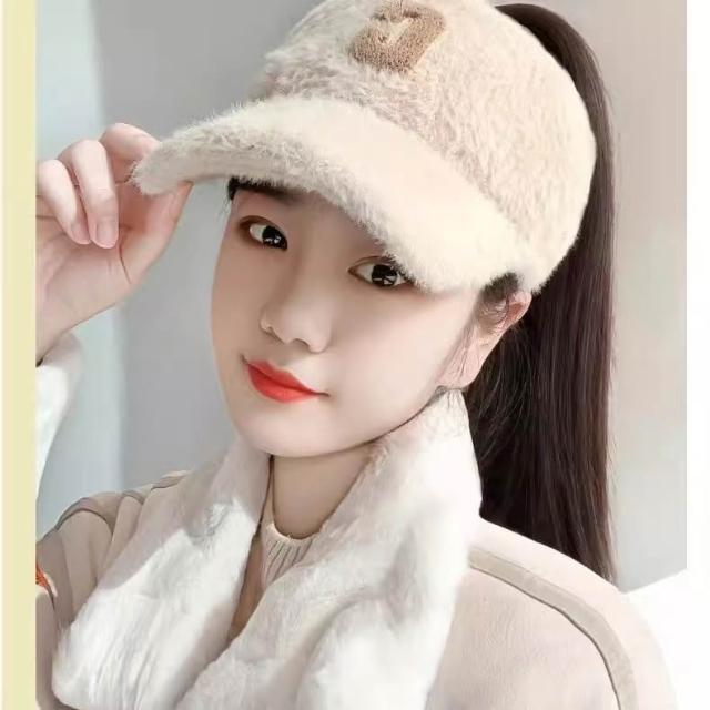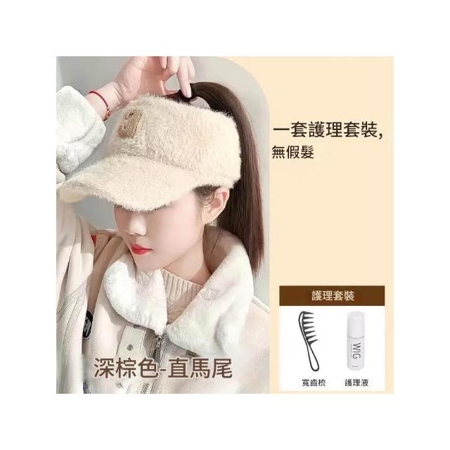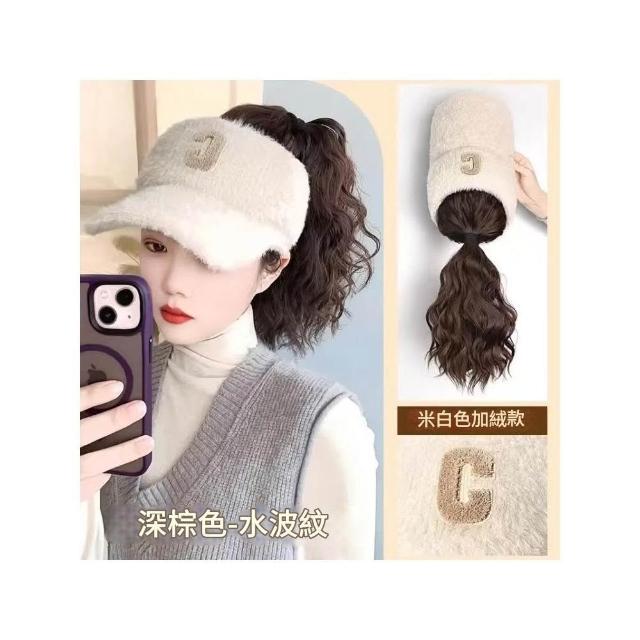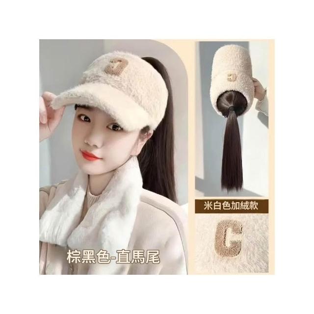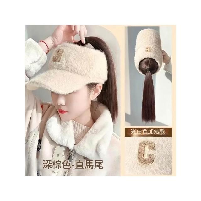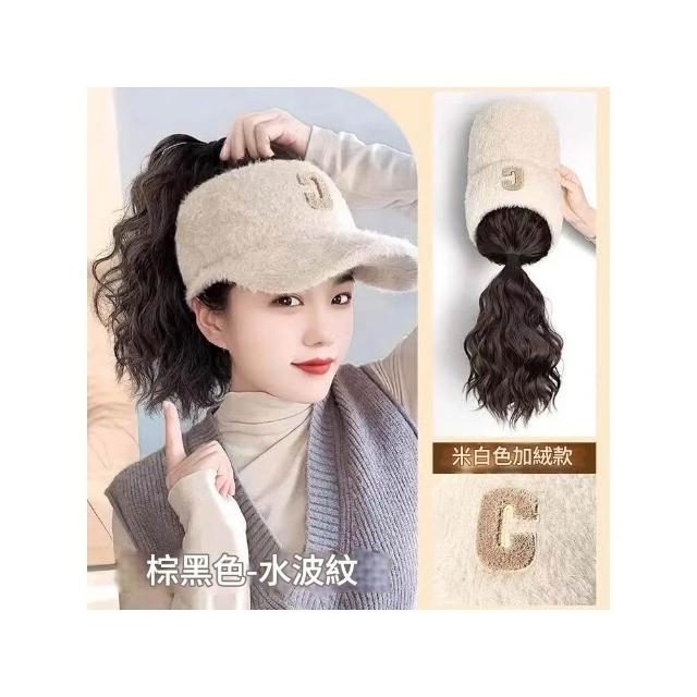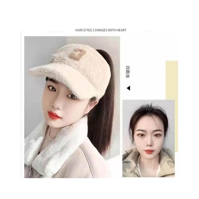Imanchen帽子假髮一體高馬尾毛絨空頂鴨舌棒球帽直馬尾假髮時尚秋冬馬尾帽