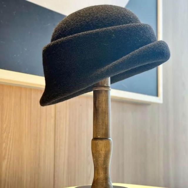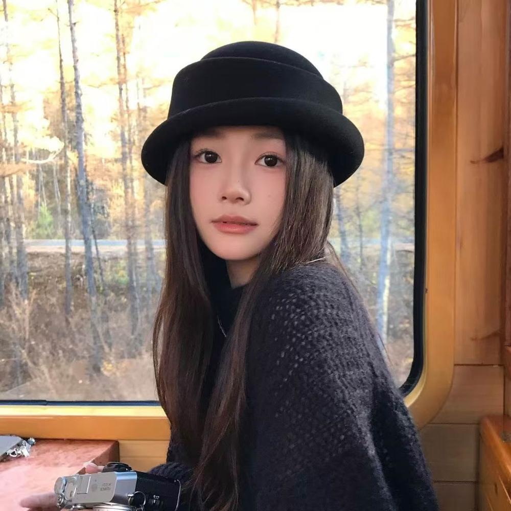 Imanchen爆款民國風帽子復古黑色小禮帽女秋冬漁夫帽赫本風小盆帽