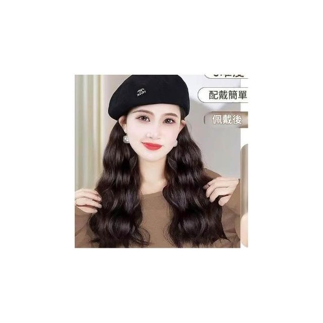 Imanchen【優雅氣質】高品質百搭貝雷帽帽子假髮一體復古氣質氛圍感水波紋
