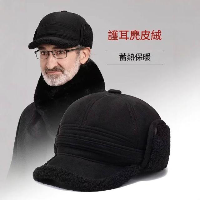 Imanchen冬季加絨護耳雷鋒帽男士中老年保暖鴨舌帽男高級帽秋冬款老年人