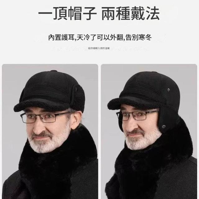 Imanchen冬季加絨護耳雷鋒帽男士中老年保暖鴨舌帽男高級帽秋冬款老年人