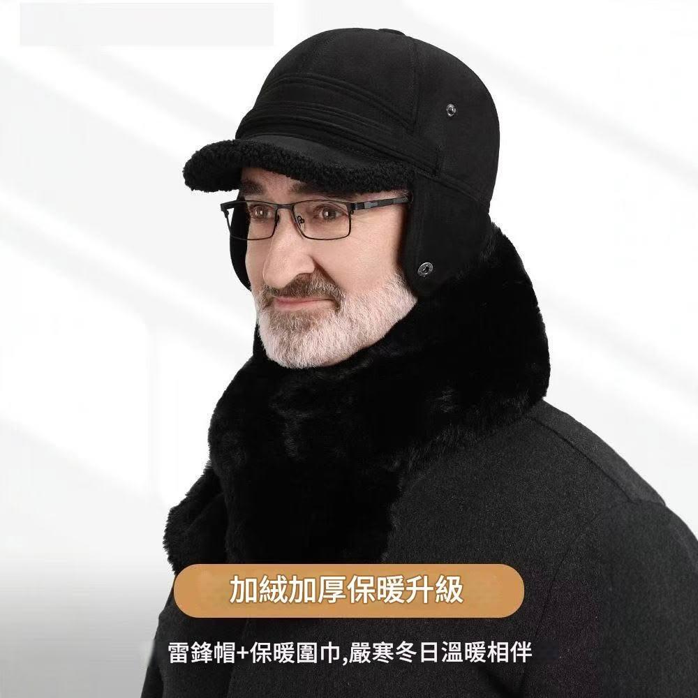 Imanchen冬季加絨護耳雷鋒帽男士中老年保暖鴨舌帽男高級帽秋冬款老年人