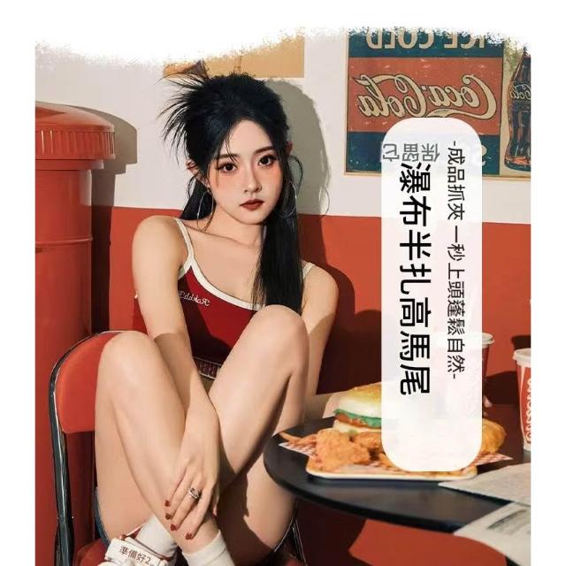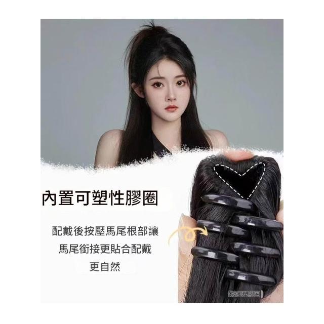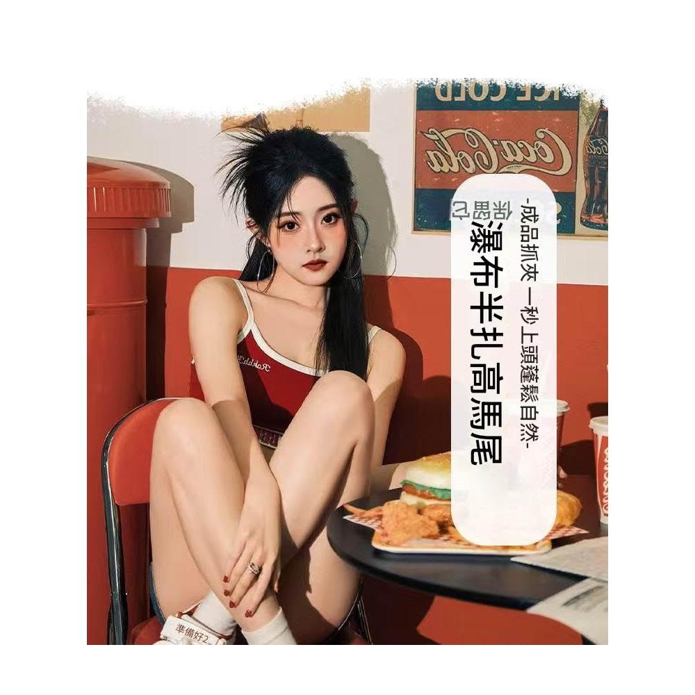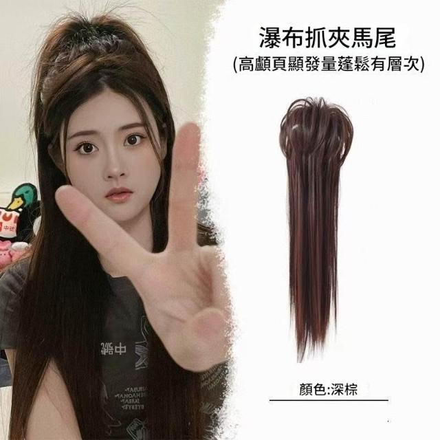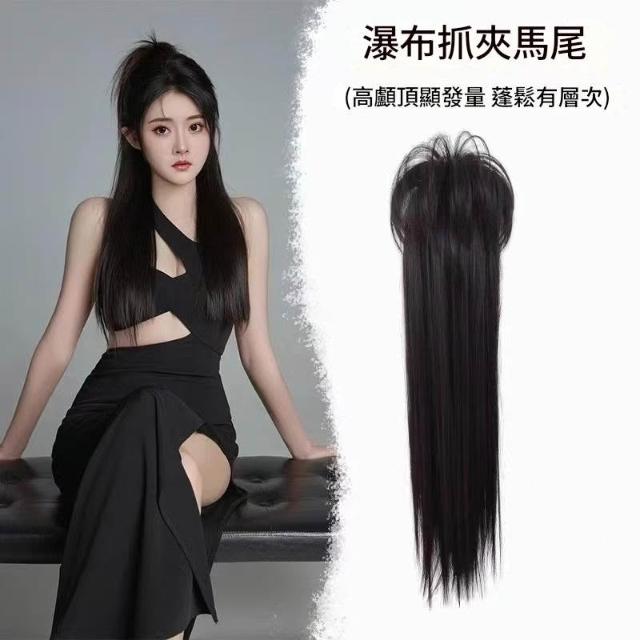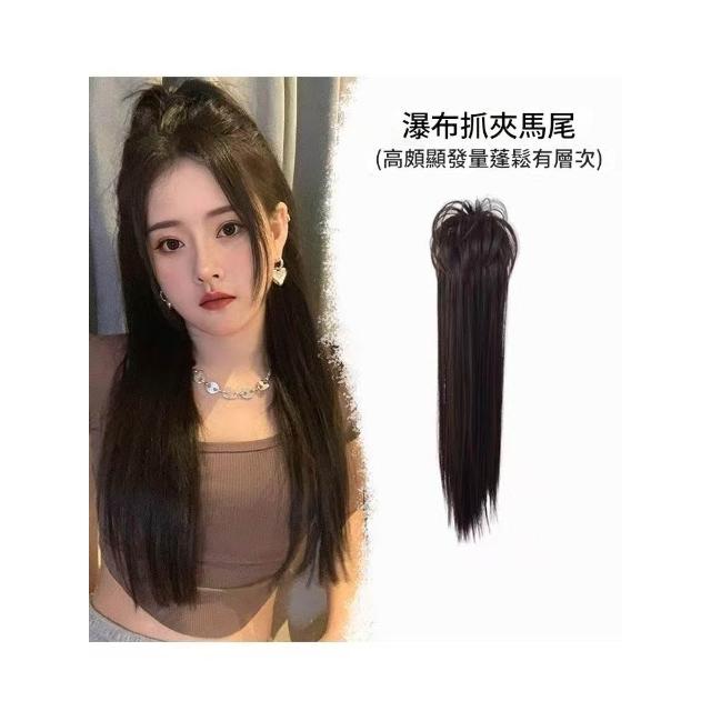 Imanchen瀑布新中式馬尾假髮女長髮抓夾式可綁高馬尾自然模擬髮蓬鬆辮子