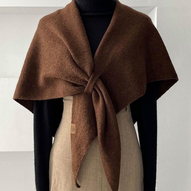 Imanchen純色羊毛混紡交叉針織披肩女冬季時尚百搭保暖護頸椎圍脖外搭坎肩