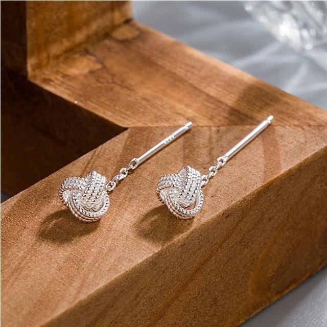 Imanchens999足銀如意結流蘇耳線女2024新款爆款耳鏈輕奢小衆短款耳環耳飾