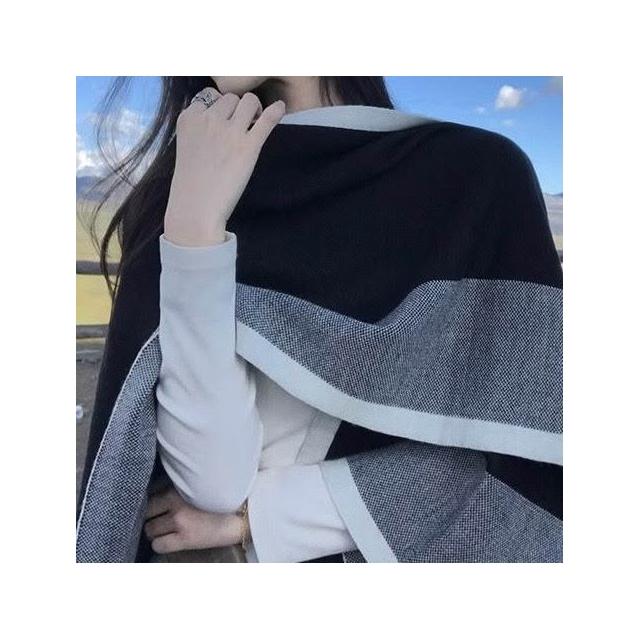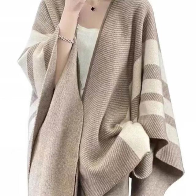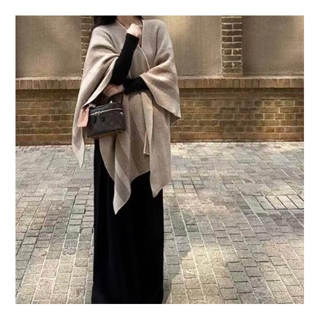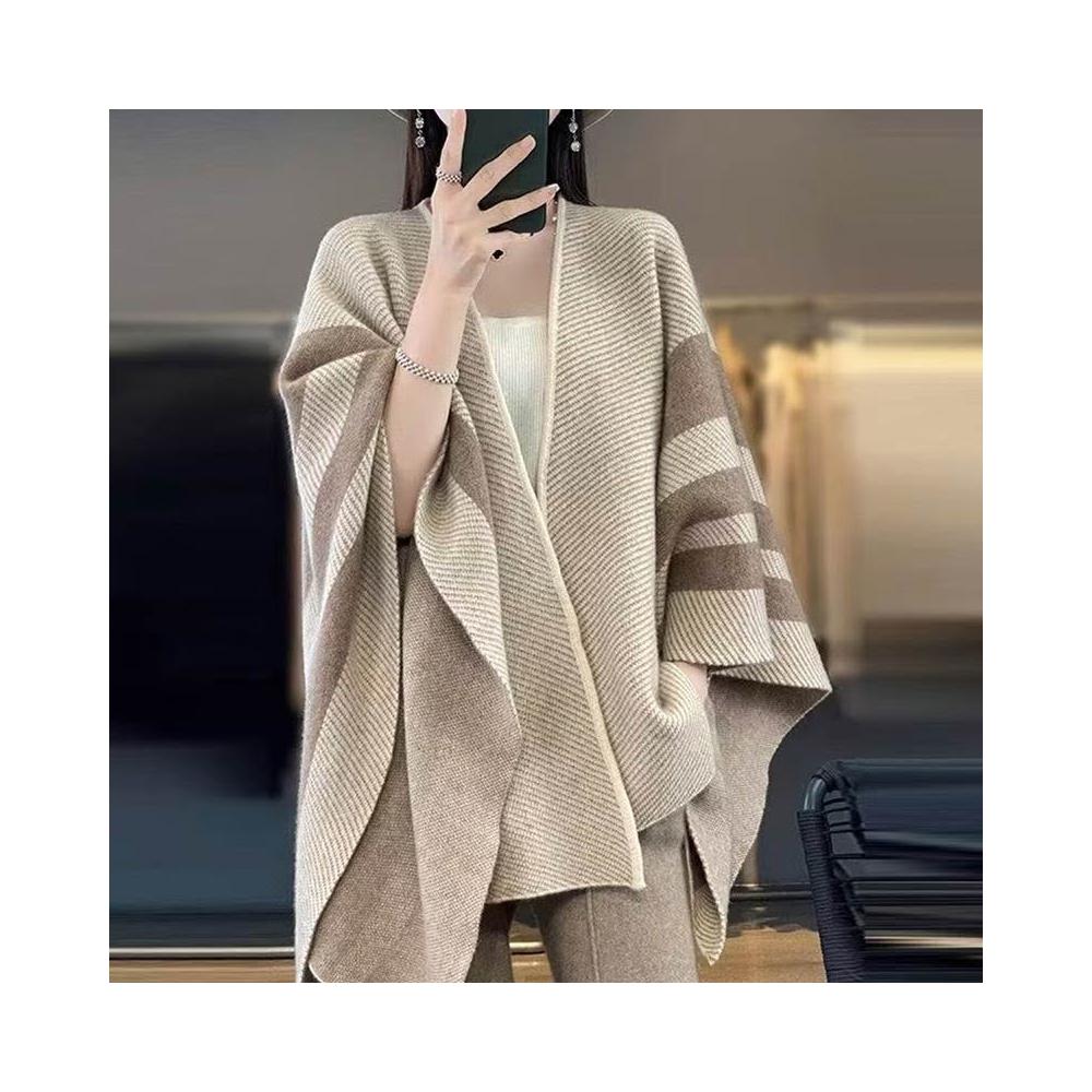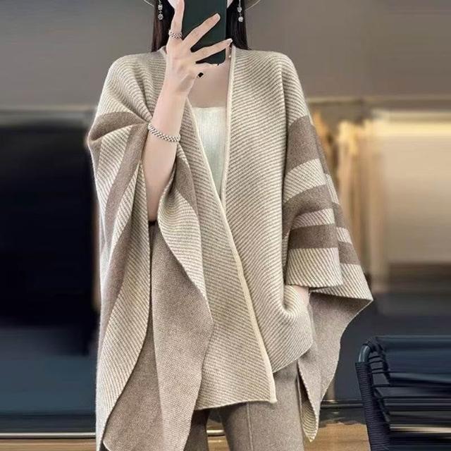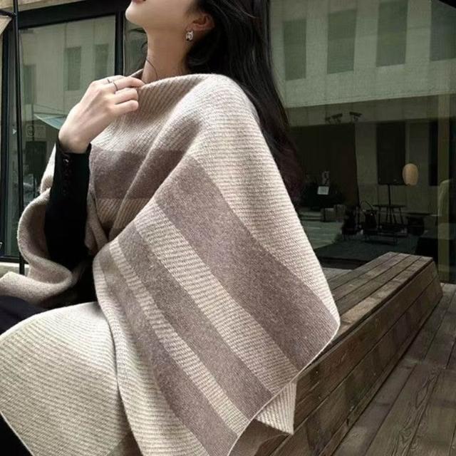 Imanchen新款針織條紋復古斗篷圍巾撞色針織衫寬鬆披肩時尚保暖高級上衣