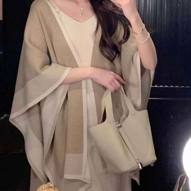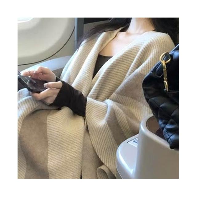 Imanchen新款針織條紋復古斗篷圍巾撞色針織衫寬鬆披肩時尚保暖高級上衣