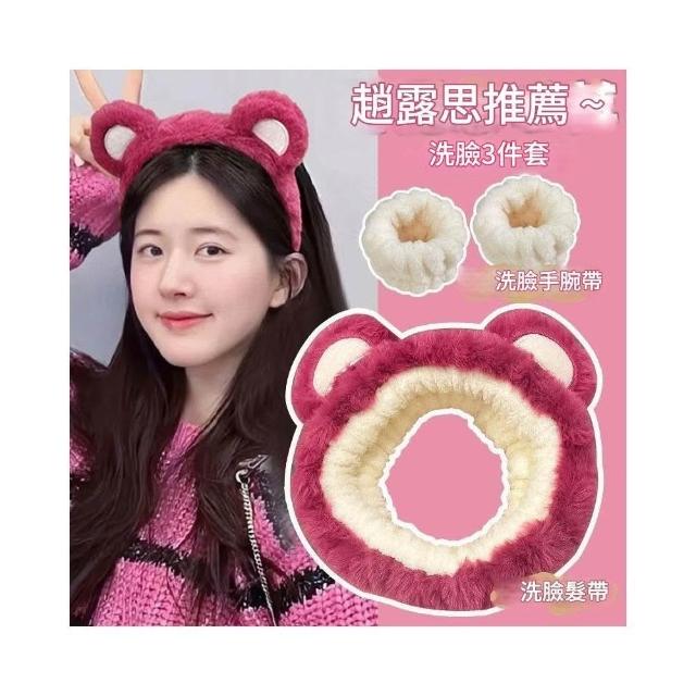 Imanchen三件套白鹿洗臉髮帶手腕帶防水防溼神器髮箍女敷面膜專用小熊頭箍