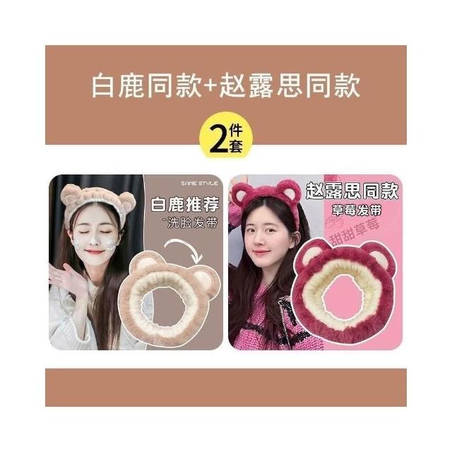 Imanchen三件套白鹿洗臉髮帶手腕帶防水防溼神器髮箍女敷面膜專用小熊頭箍