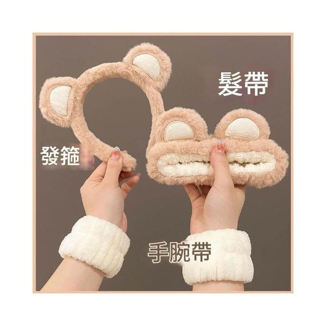 Imanchen三件套白鹿洗臉髮帶手腕帶防水防溼神器髮箍女敷面膜專用小熊頭箍