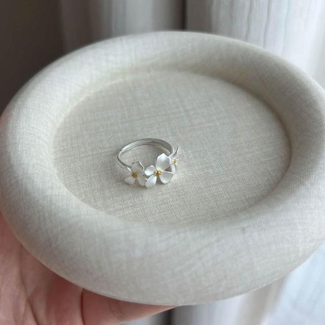 Imanchen925純銀新中式梔子花戒指女ins小清新時尚百搭小衆設計高級感指環