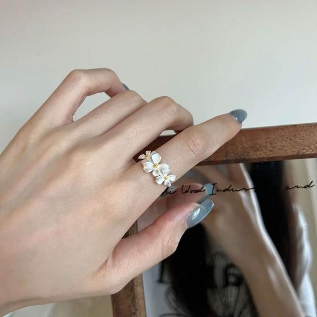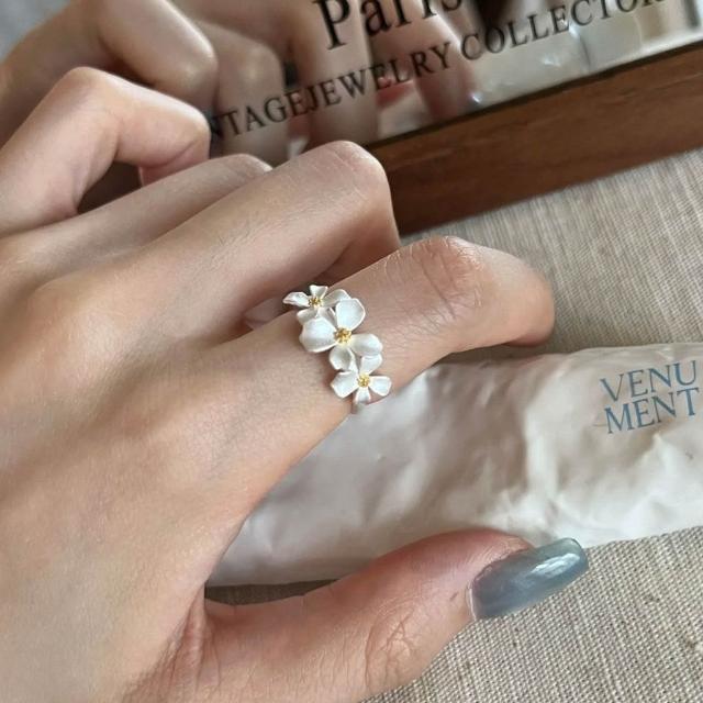 Imanchen925純銀新中式梔子花戒指女ins小清新時尚百搭小衆設計高級感指環