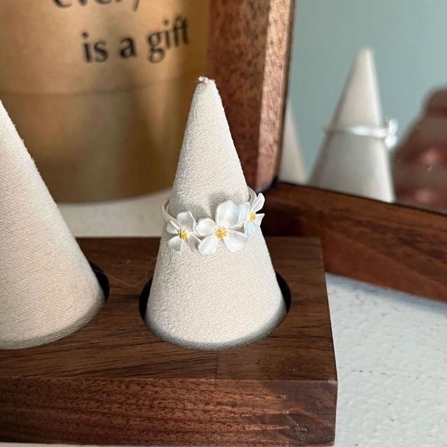 Imanchen925純銀新中式梔子花戒指女ins小清新時尚百搭小衆設計高級感指環