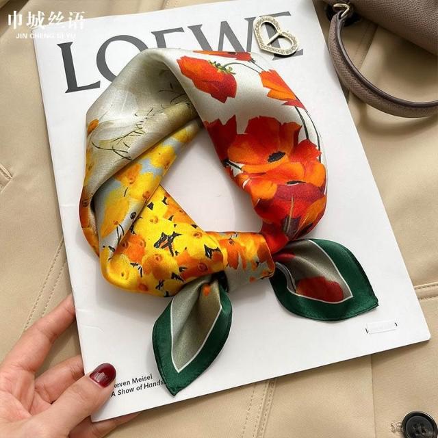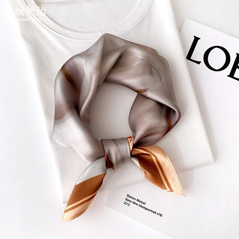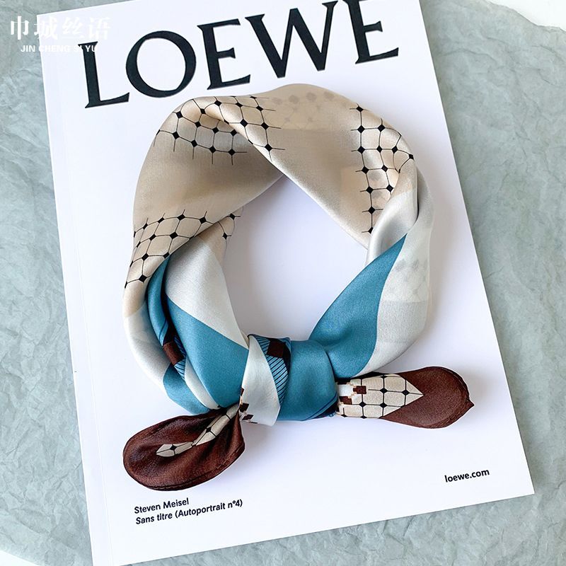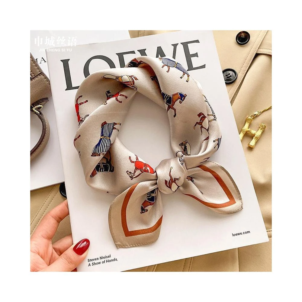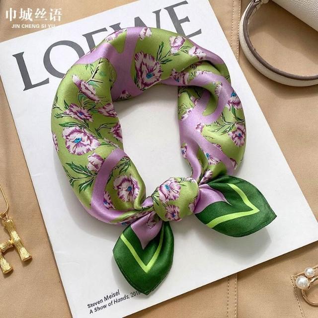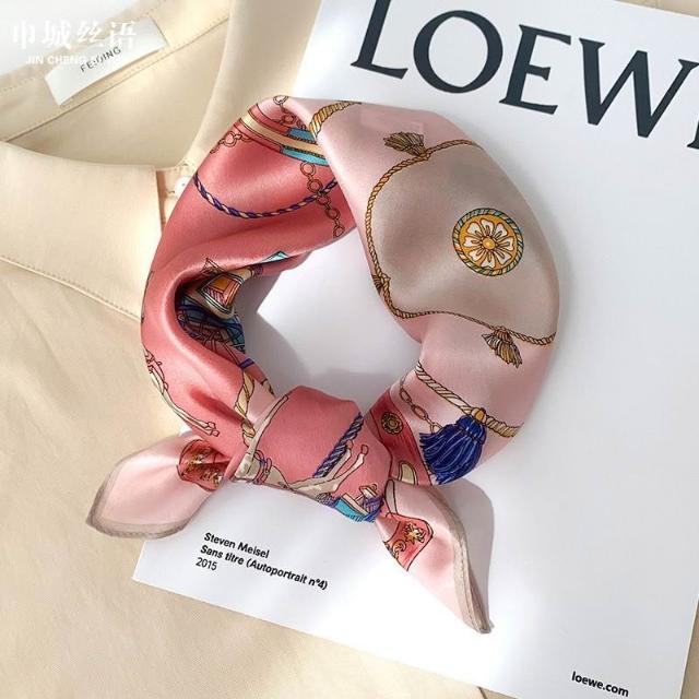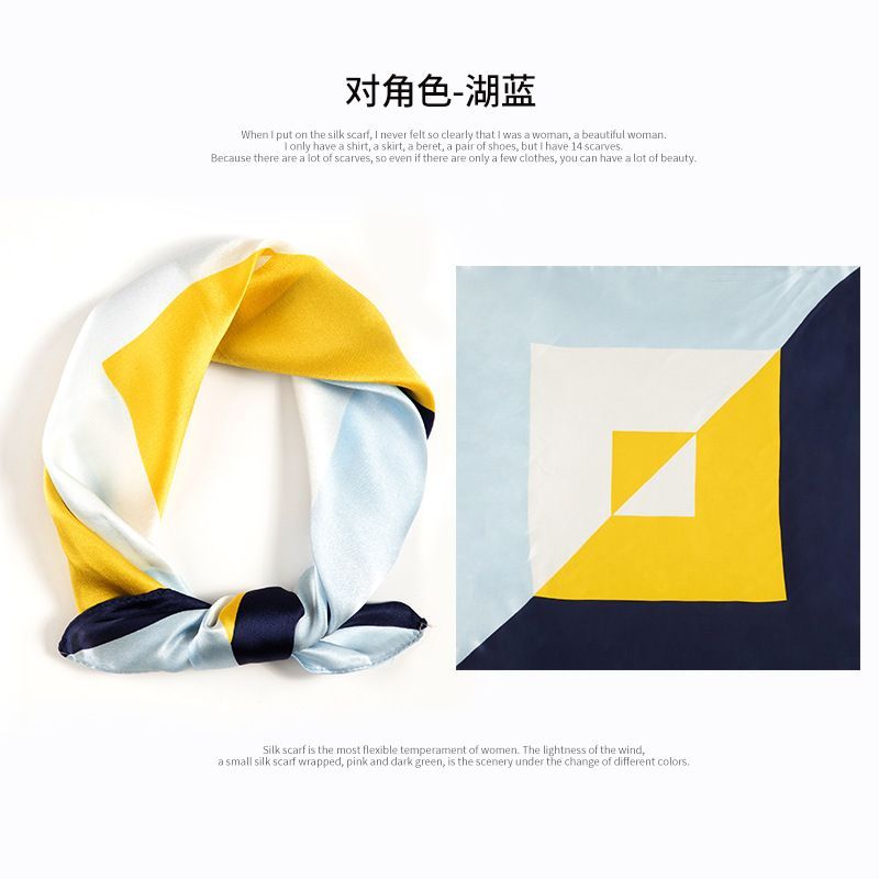 Imanchen100%桑蠶絲真絲小方巾53cm高檔圍脖絲巾女時尚百搭春夏秋冬季圍巾