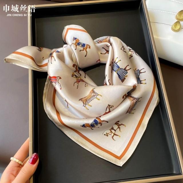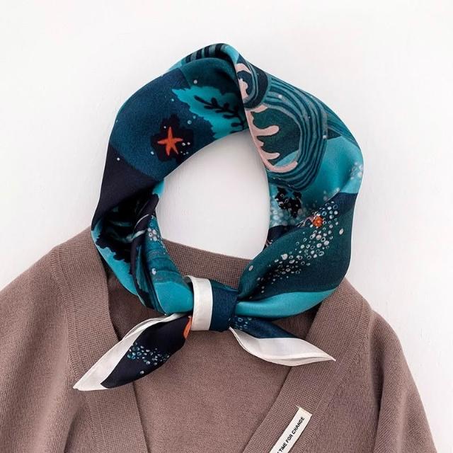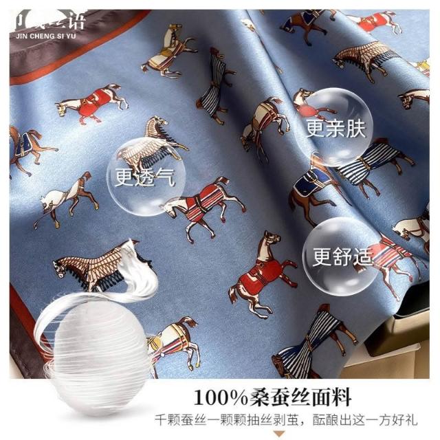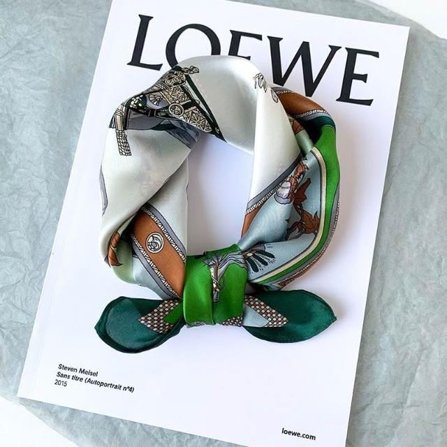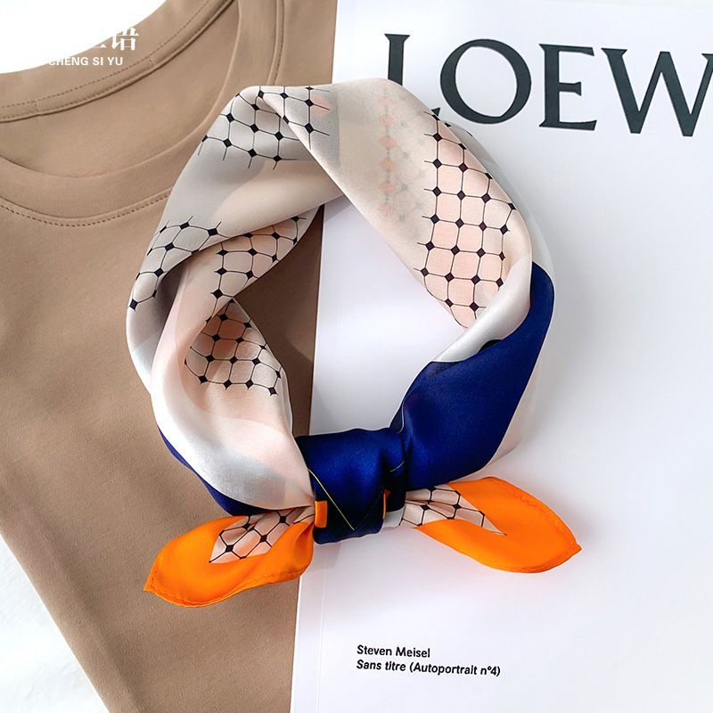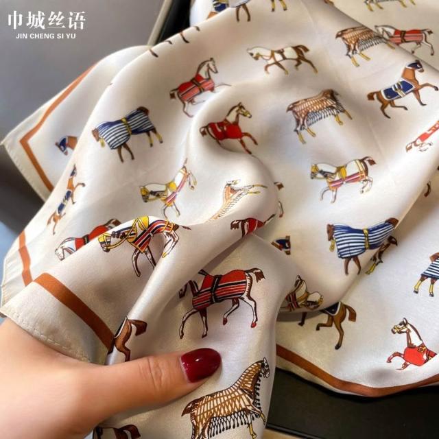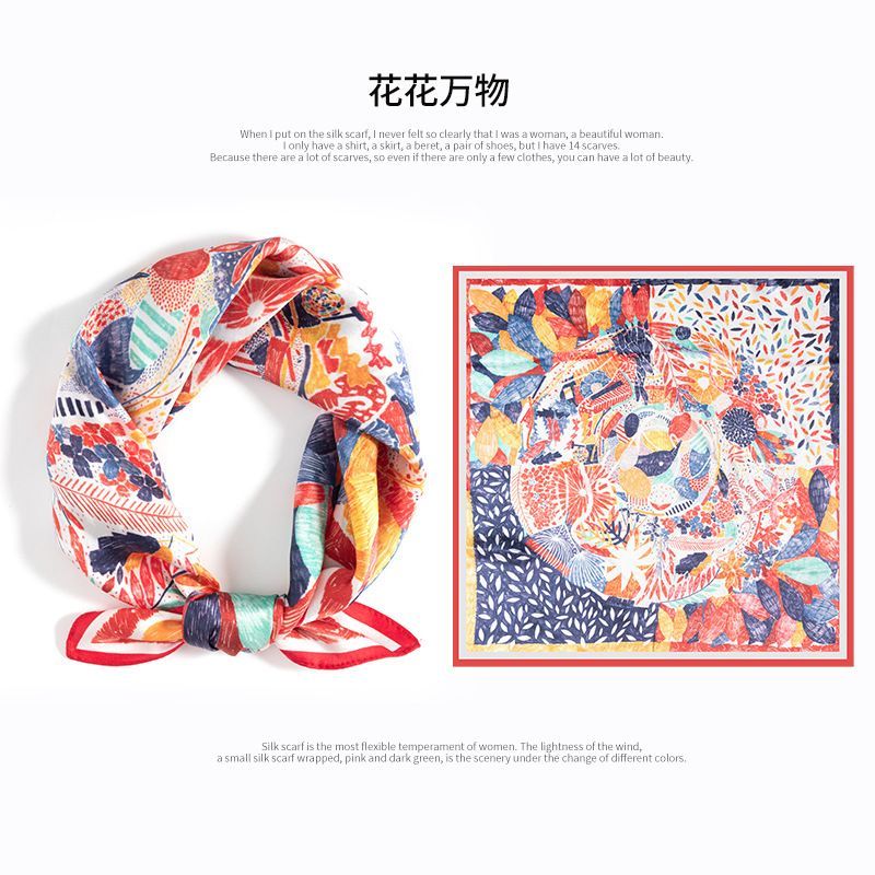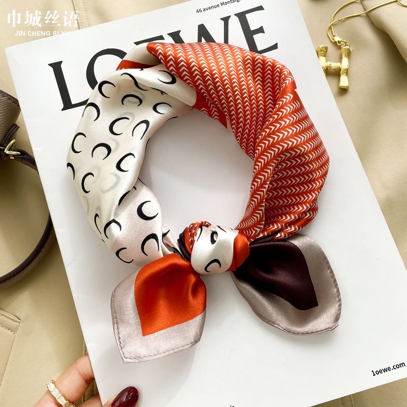 Imanchen100%桑蠶絲真絲小方巾53cm高檔圍脖絲巾女時尚百搭春夏秋冬季圍巾