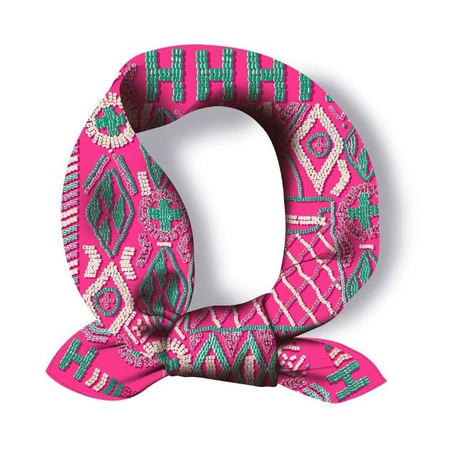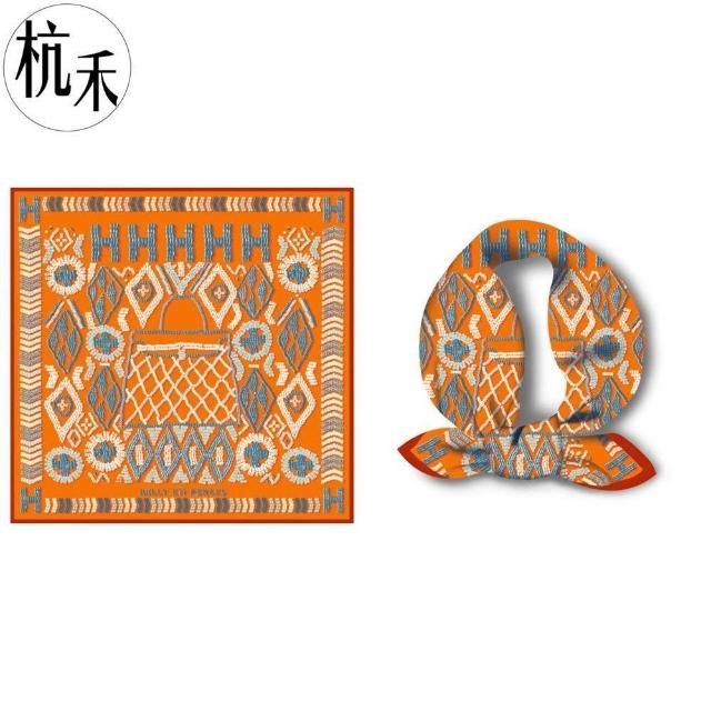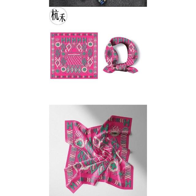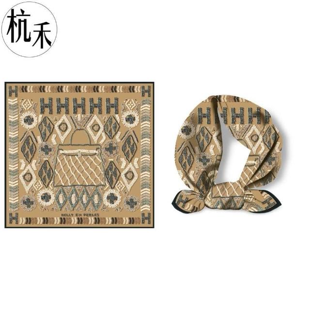 Imanchen杭禾綢莊 仿繡花圖案字母凱莉包 女士春夏小方巾薄款絲巾圍巾領巾