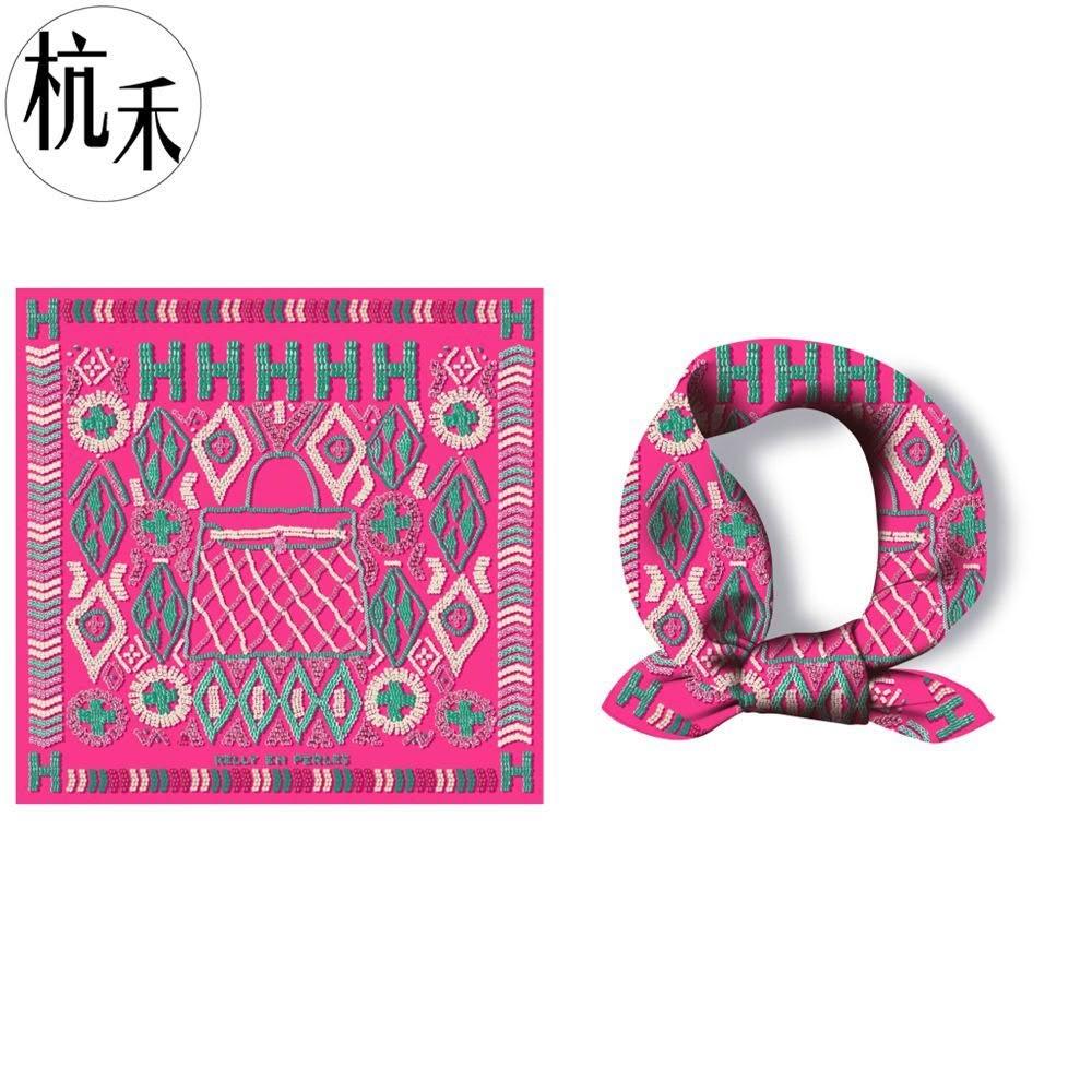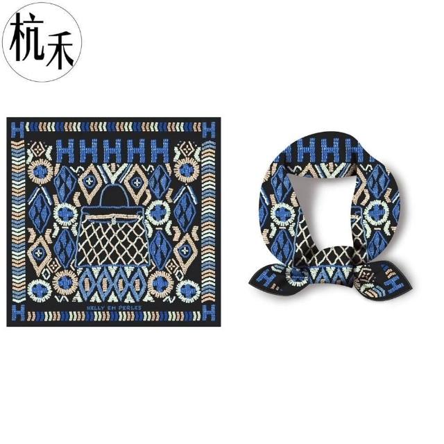Imanchen杭禾綢莊 仿繡花圖案字母凱莉包 女士春夏小方巾薄款絲巾圍巾領巾