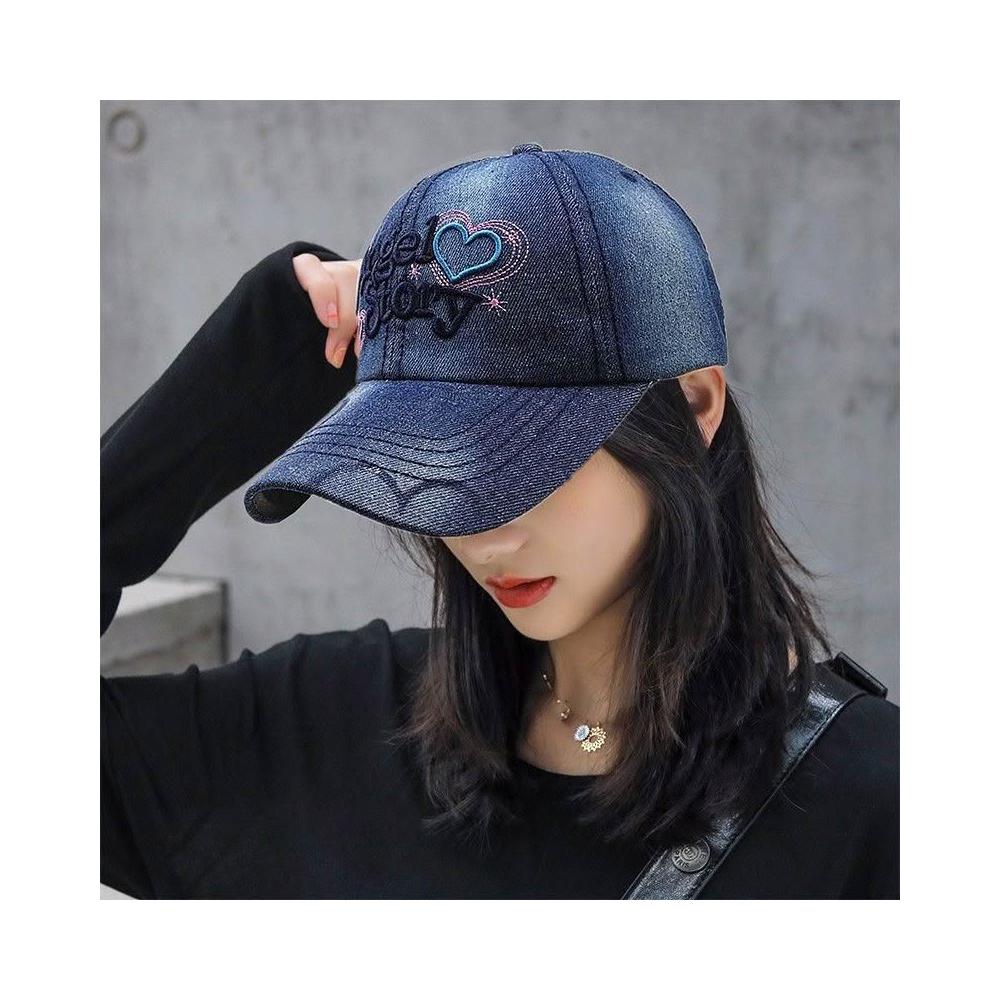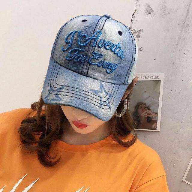 Imanchen牛仔鴨舌帽女戶外休閒棒球帽夏天遮陽防曬帽春秋刺繡字母太陽帽子