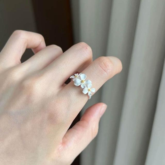 Imanchen新款925純銀清冷感梔子花戒指ins小衆輕奢復古氣質中國風簡約百搭