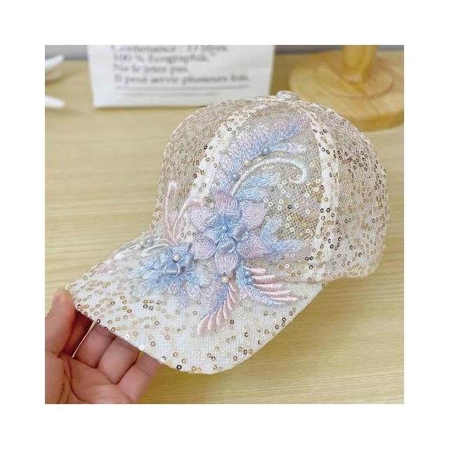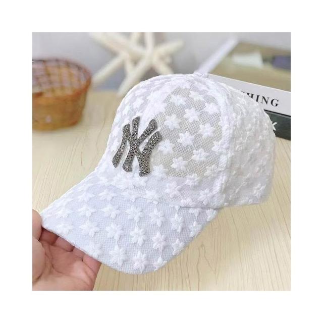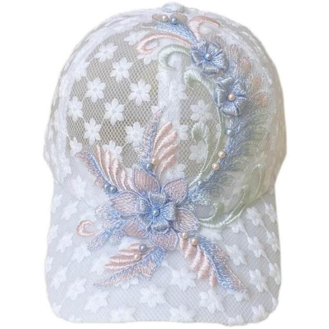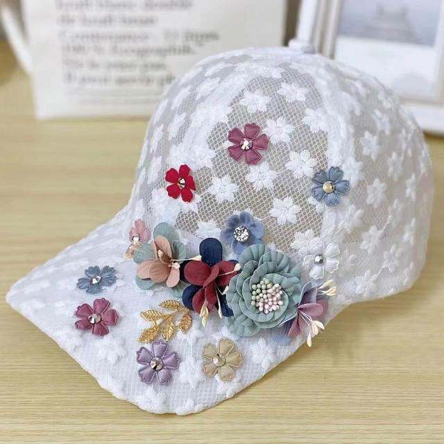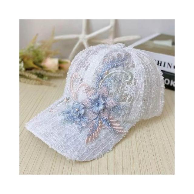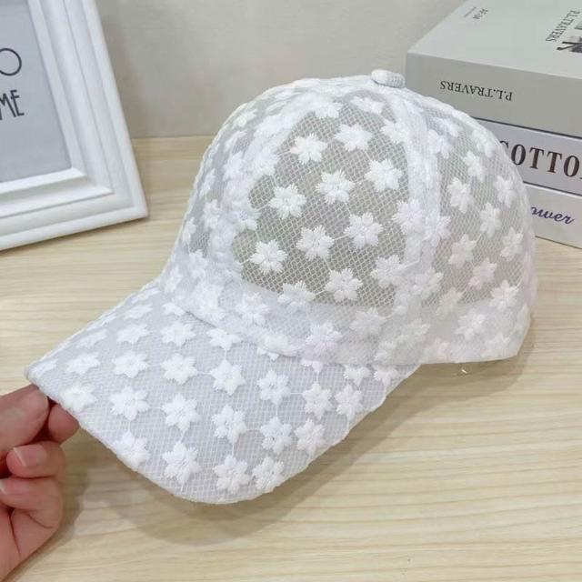 Imanchen夏季薄款蕾絲鴨舌帽刺繡花朵網眼透氣棒球帽韓版潮防曬遮陽帽子女