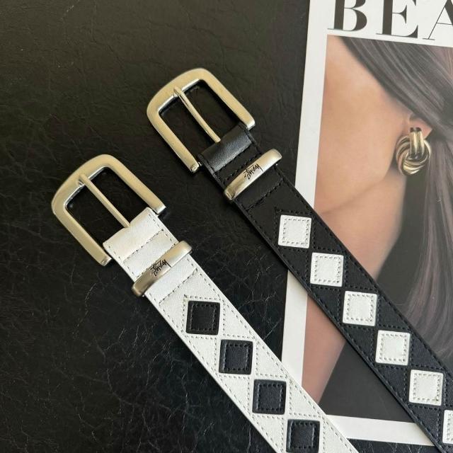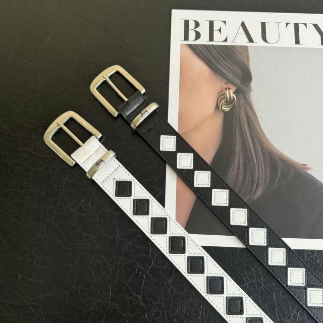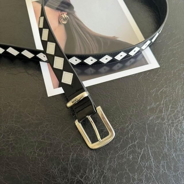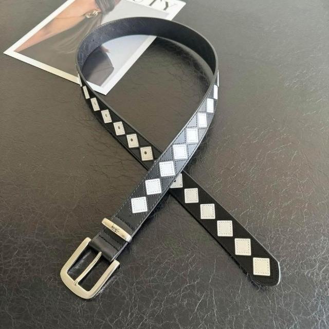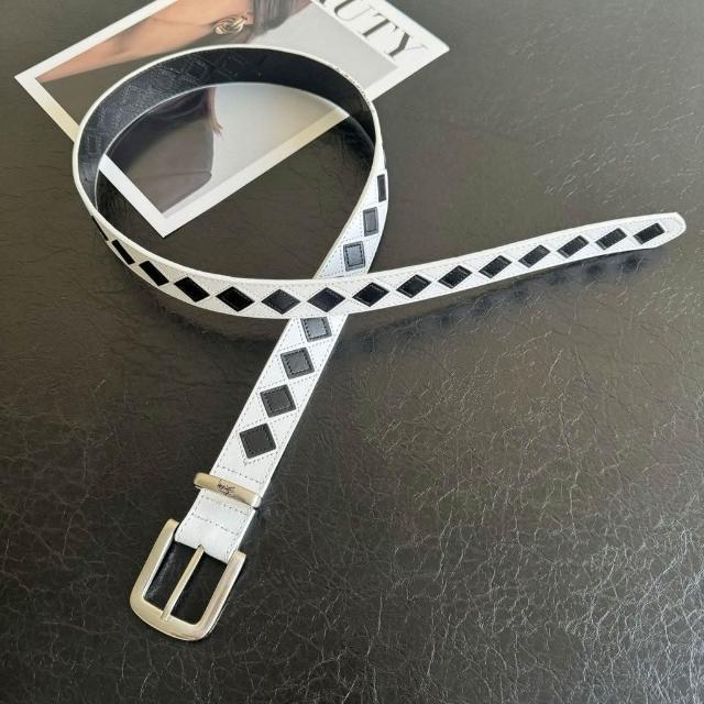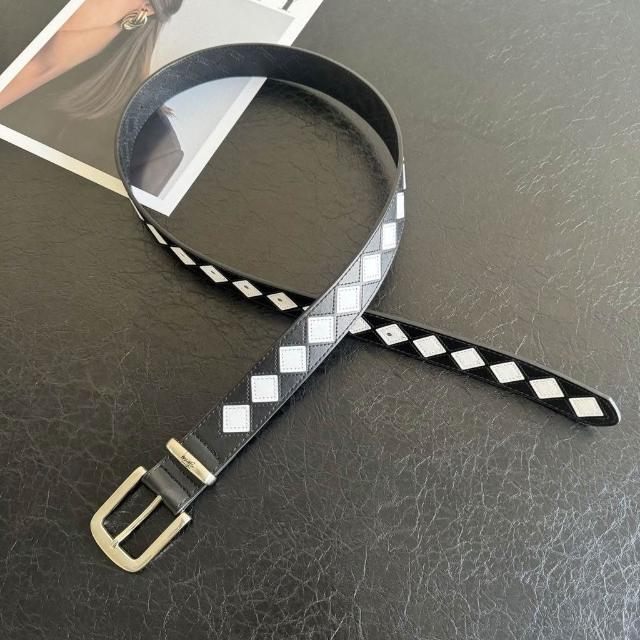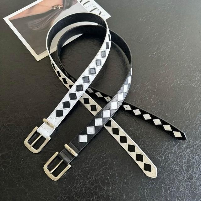 Imanchen腰帶休閒棋盤皮帶菱形針釦男女同款ins風百搭黑白vibe菱格