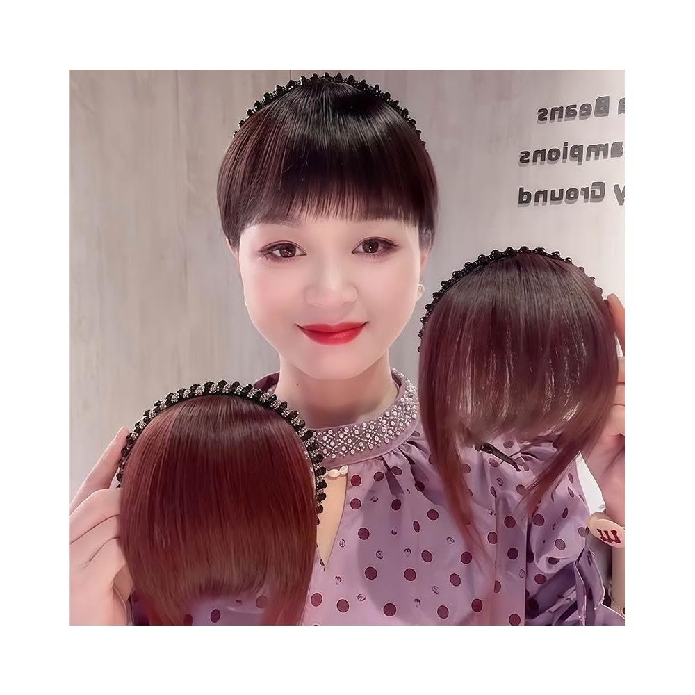Imanchen髮箍劉海一體女假髮片前額頭遮白髮增髮量自然鬢角碎齊劉海補發塊