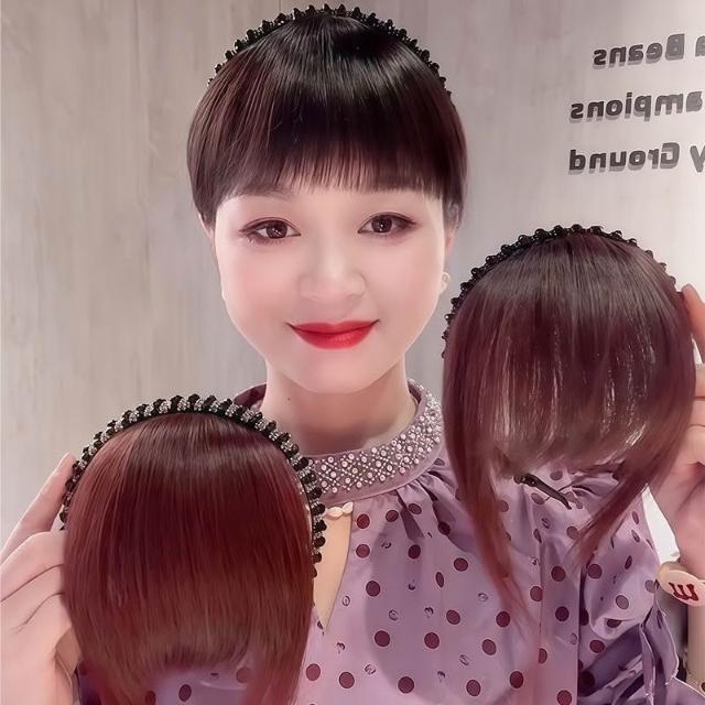 Imanchen髮箍劉海一體女假髮片前額頭遮白髮增髮量自然鬢角碎齊劉海補發塊
