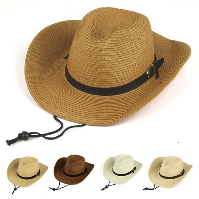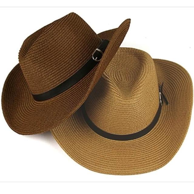 Imanchen親子款可摺疊沙灘帽草帽西部牛仔釣魚帽大沿帽夏天遮陽帽子男士禮帽寬檐