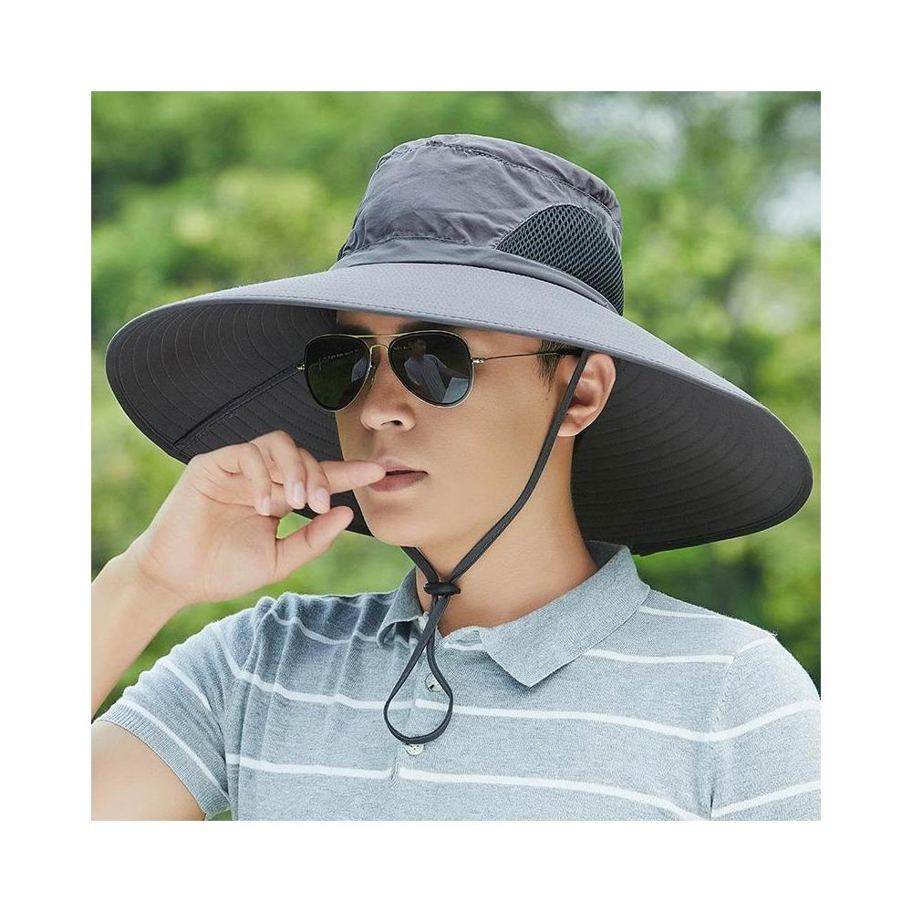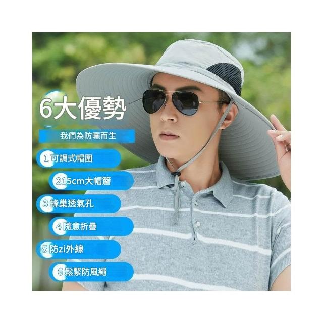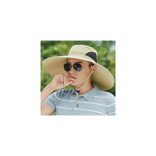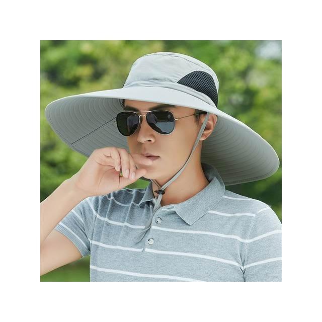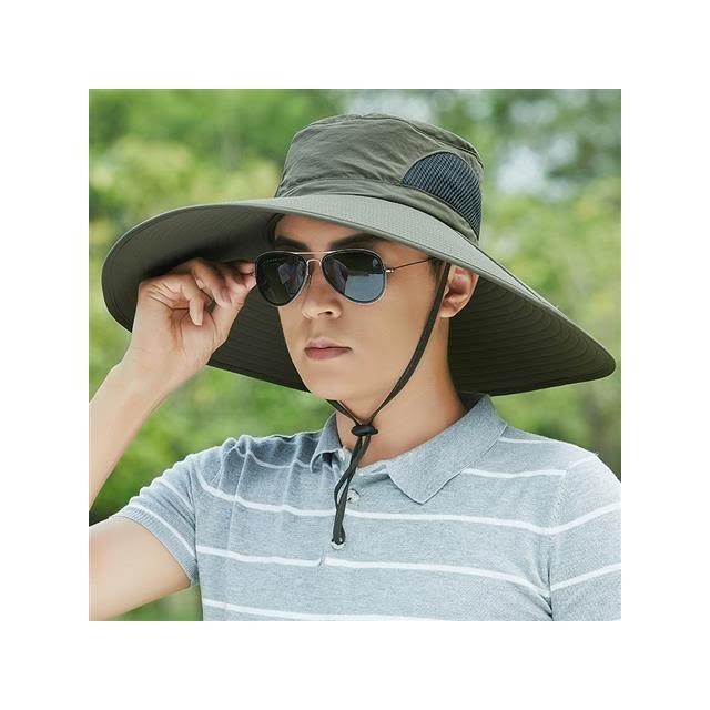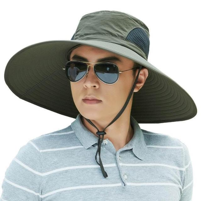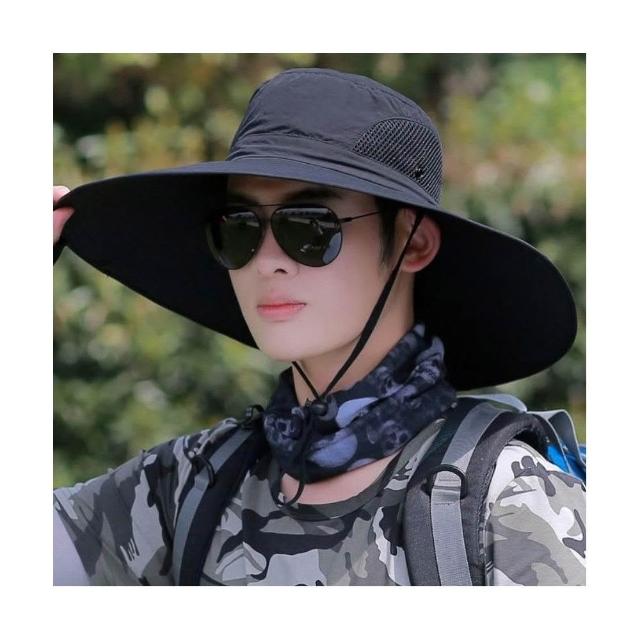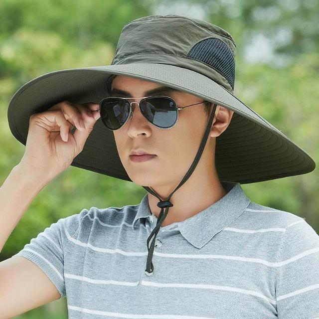 Imanchen遮陽帽男夏季戶外釣魚帽子男士防曬帽遮臉防紫外線透氣大檐漁夫帽