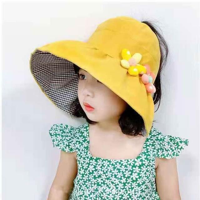 Imanchen兒童空頂帽夏季女童遮陽帽寶寶防曬帽可愛大帽檐太陽帽親子涼帽潮