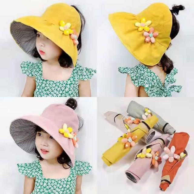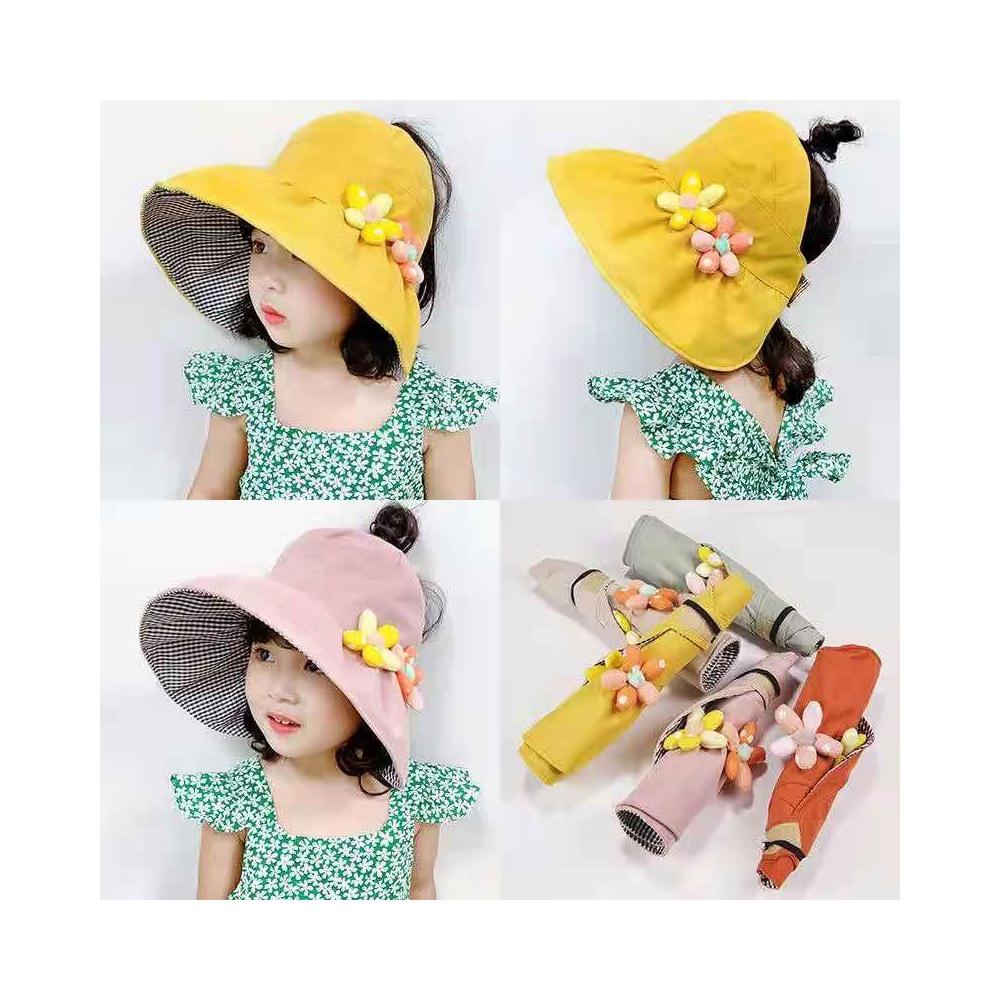 Imanchen兒童空頂帽夏季女童遮陽帽寶寶防曬帽可愛大帽檐太陽帽親子涼帽潮