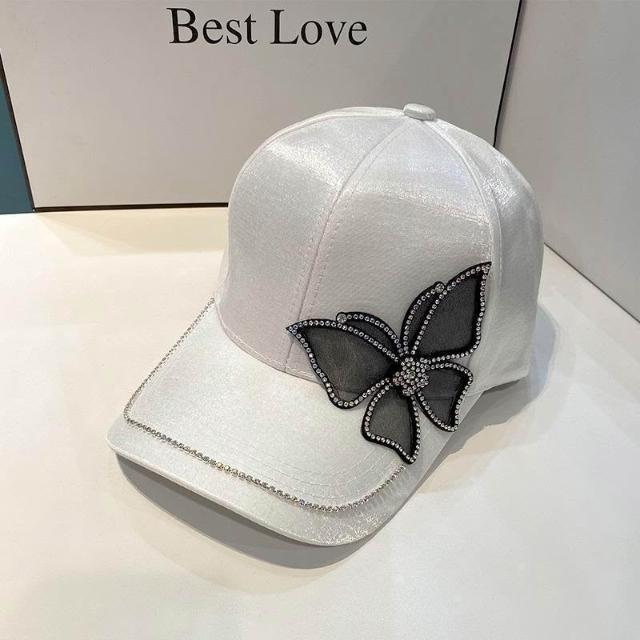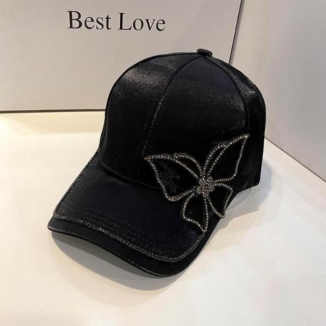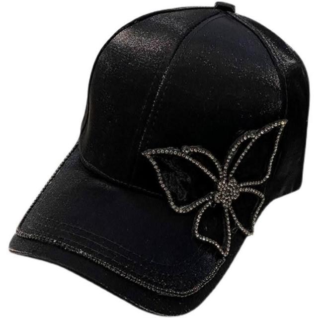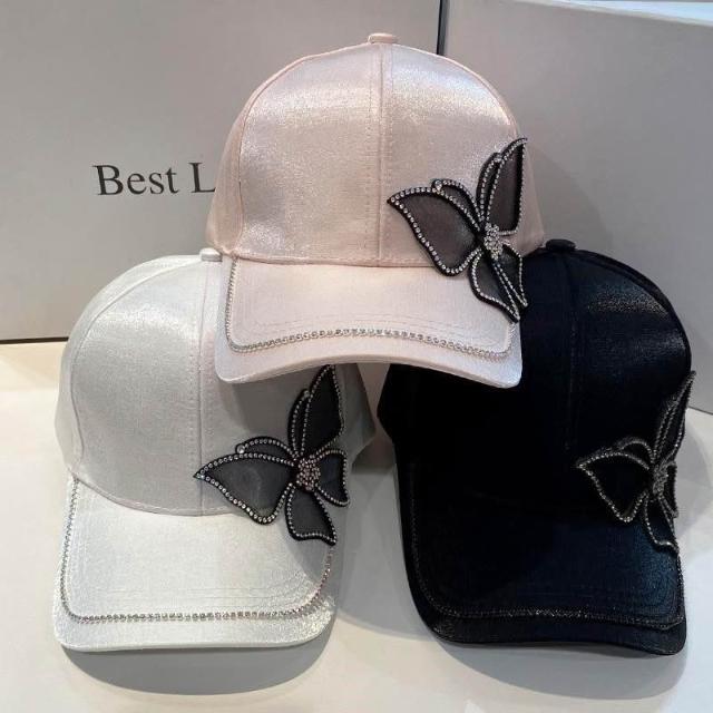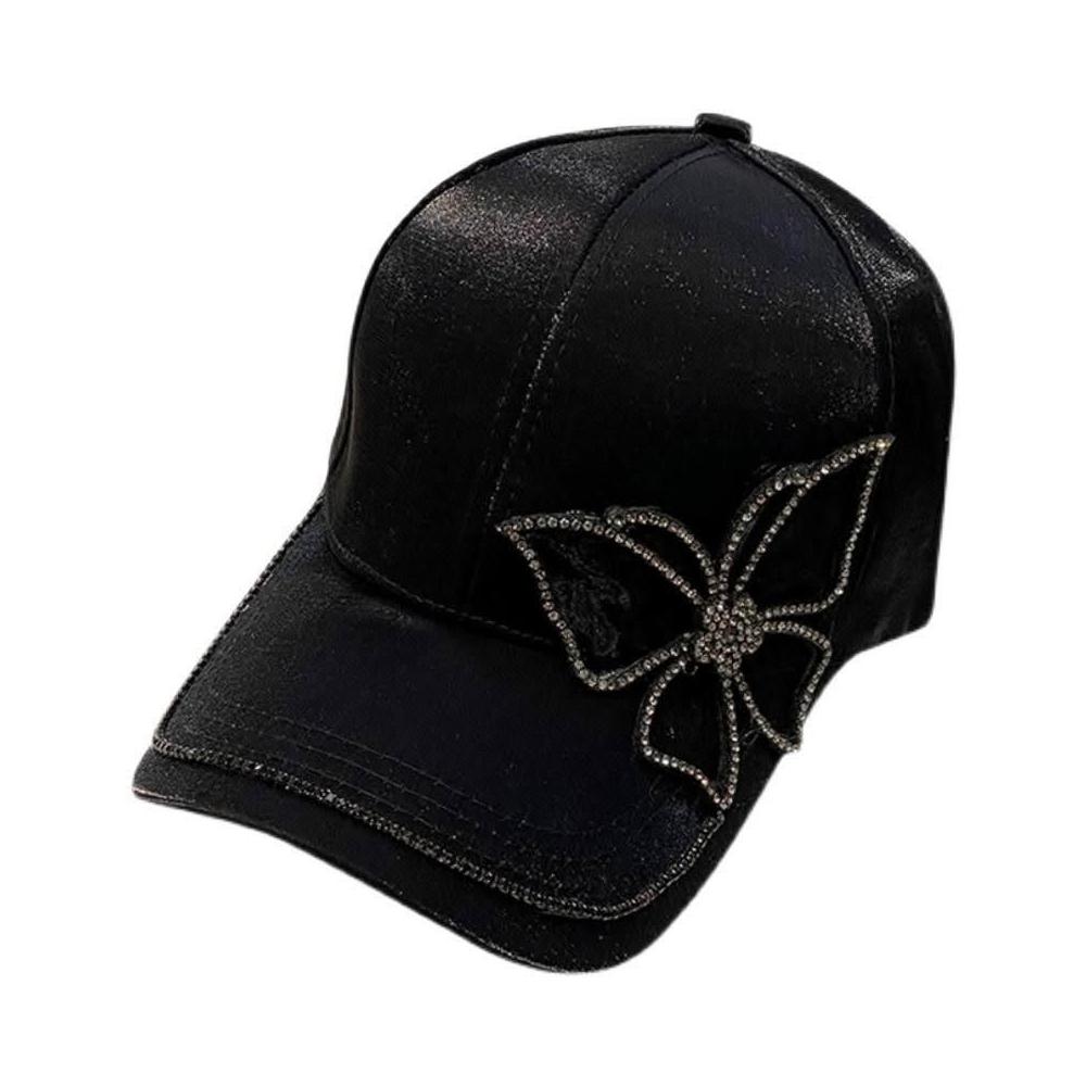 Imanchen春秋新款網紅韓版棒球帽百搭休閒夏天遮陽鴨舌帽蝴蝶水鑽帽子女潮