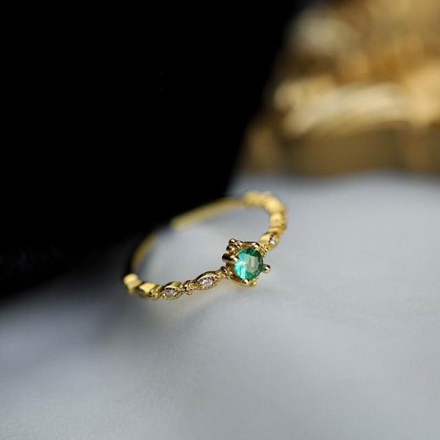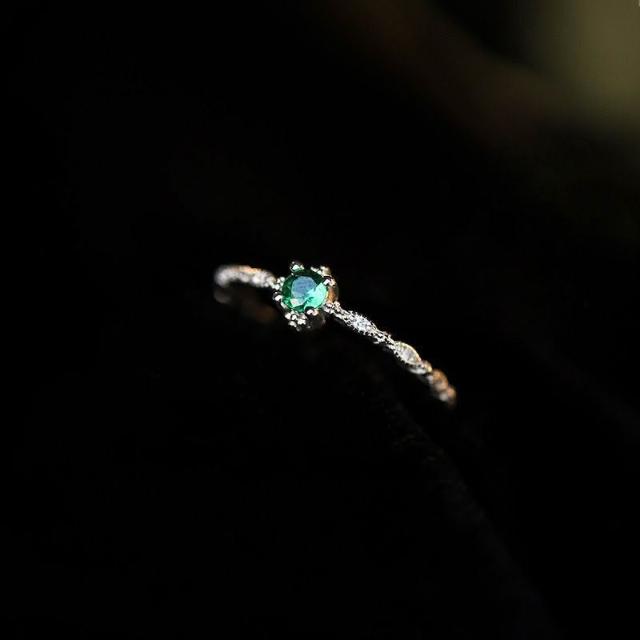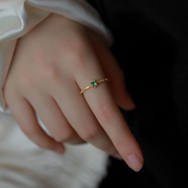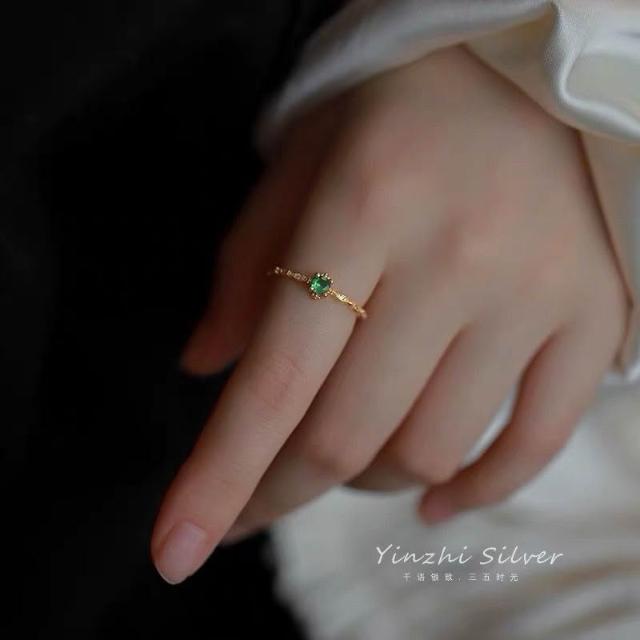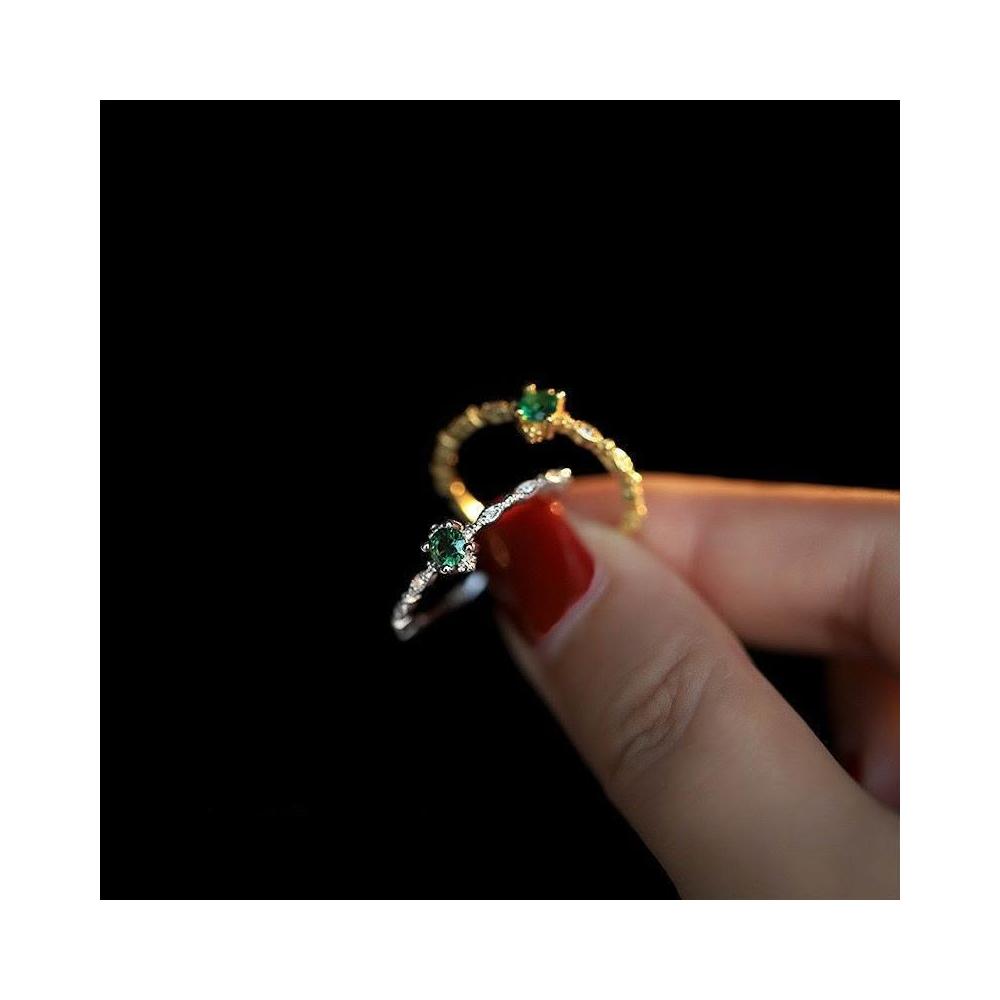 Imanchen925銀復古祖母綠水鑽戒指女細戒簡約小衆設計輕奢招財高級食指戒