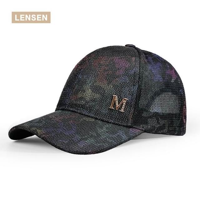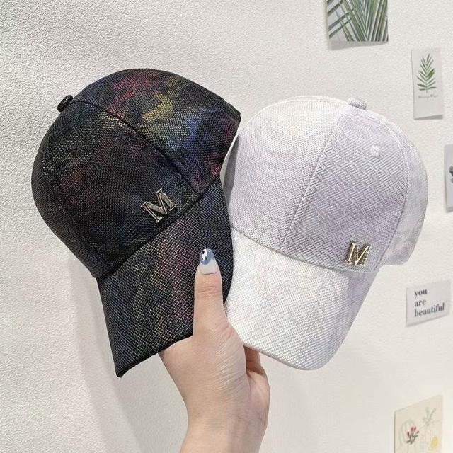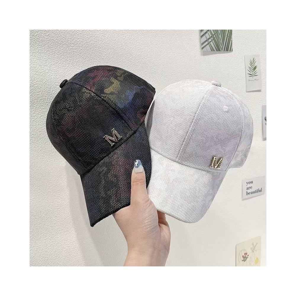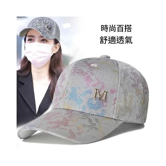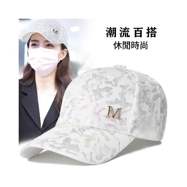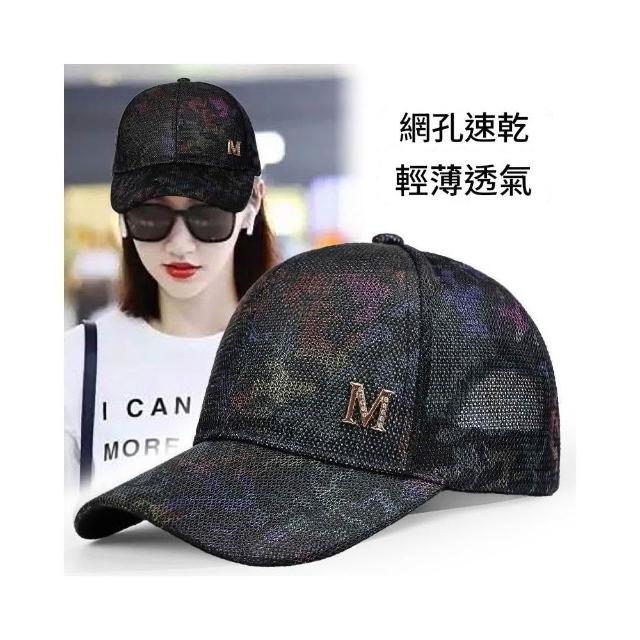 Imanchen新款夏季網帽女炫彩水鑽M標鴨舌帽日系百搭街頭個性潮牌棒球帽男