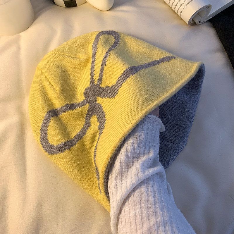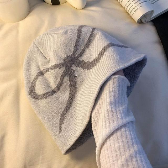 Imanchen韓系灰色針織冷帽女秋冬格雷系百搭包頭帽大頭圍顯臉小毛線帽子潮