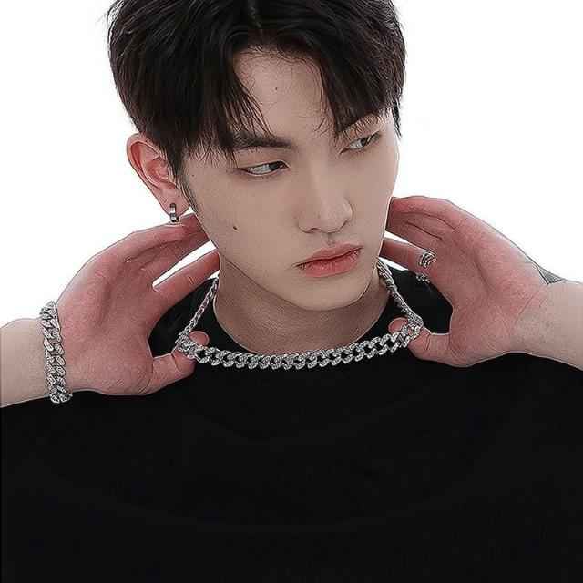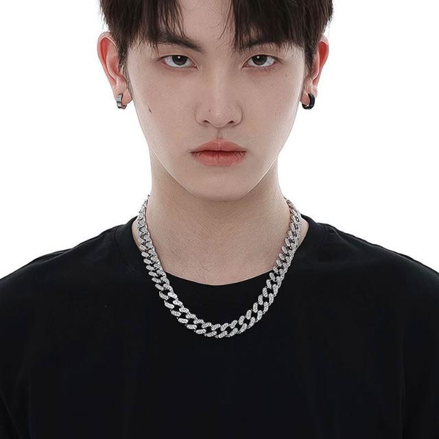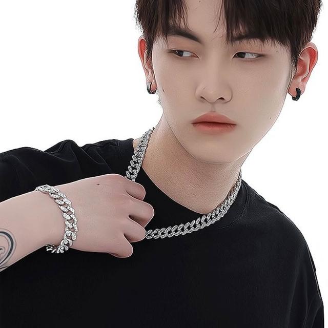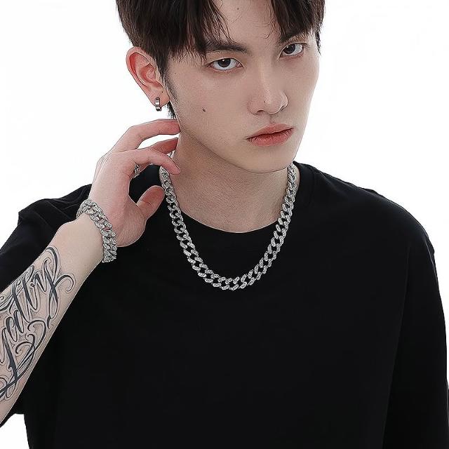 Imanchen新款滿鑽古巴項鍊男王鶴棣同款潮流歐美嘻哈潮酷個性百搭男士粗鏈