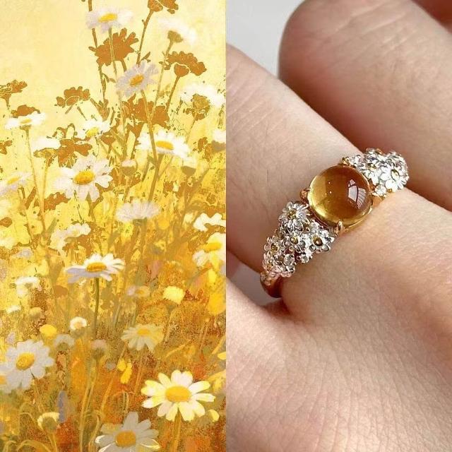 Imanchen925小雛菊花朵戒指優雅花朵戒指女精緻個性輕奢高級感開口可調節