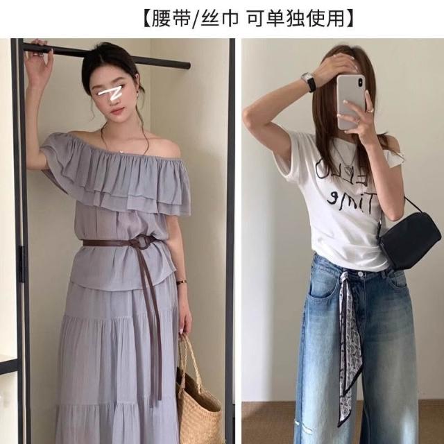 Imanchen絲巾腰帶配飾女波西米亞風腰繩裝飾配連衣裙子新款皮帶高級感