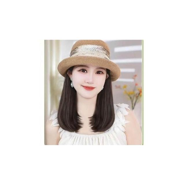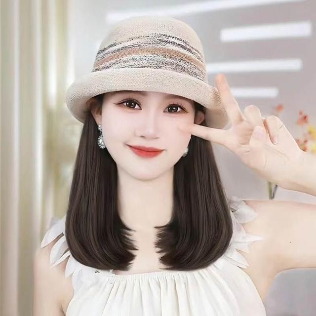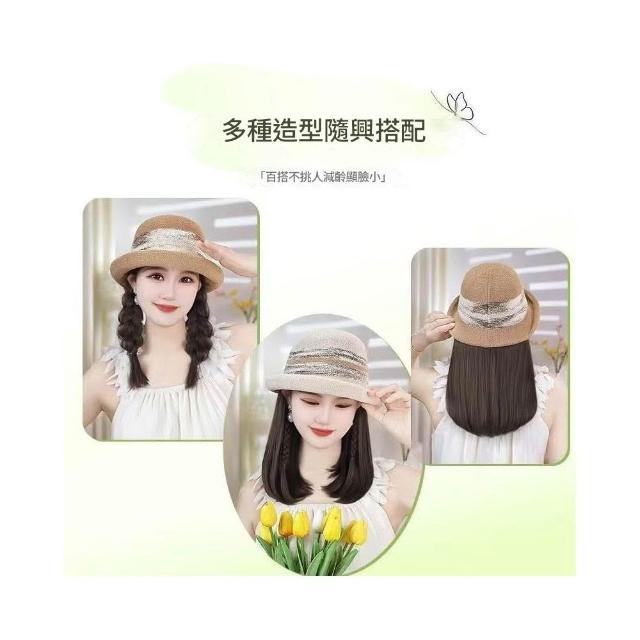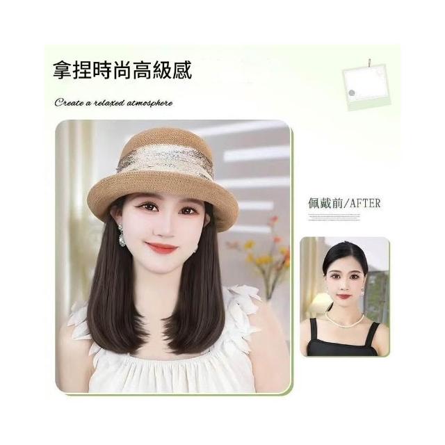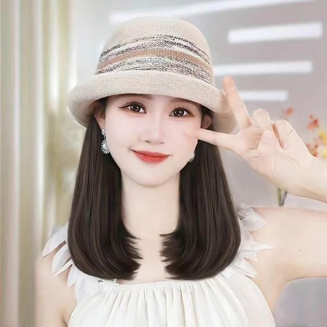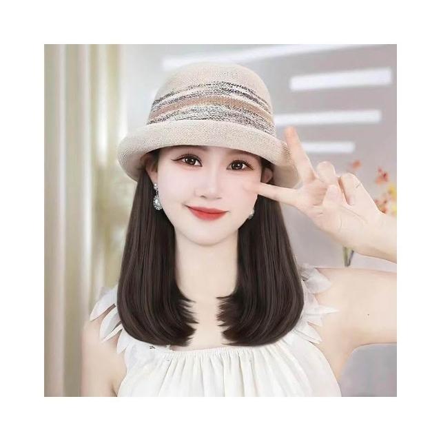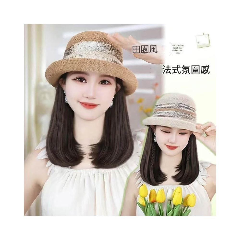 Imanchen新款夏天帽子溫柔氣質法式禮帽帽子假髮一體鎖骨發減齡顯臉小百搭