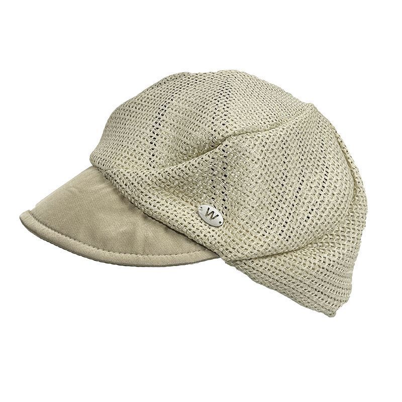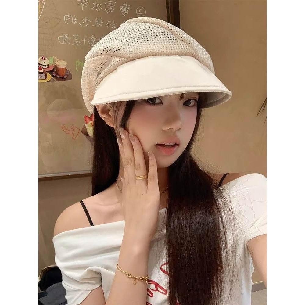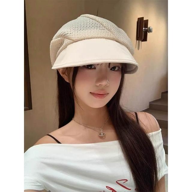 Imanchen夏季鏤空貝雷帽女薄款透氣堆堆帽時尚簡約百搭大頭圍顯臉小八角帽