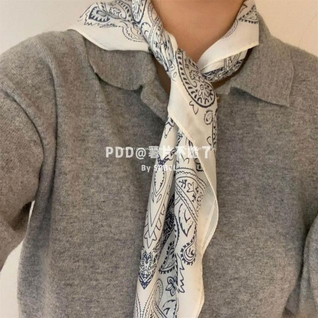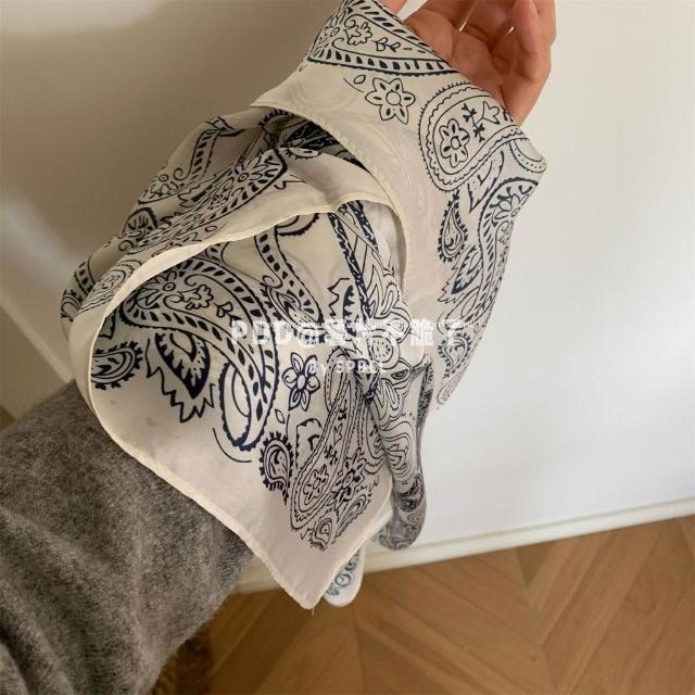 Imanchen仿真絲復古疊穿腰果花絲巾裝飾秋冬新款髮帶百搭時尚領巾方巾圍巾