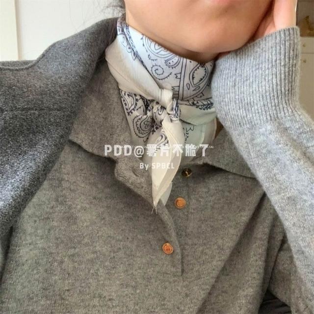 Imanchen仿真絲復古疊穿腰果花絲巾裝飾秋冬新款髮帶百搭時尚領巾方巾圍巾