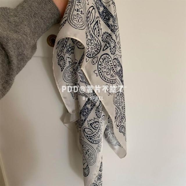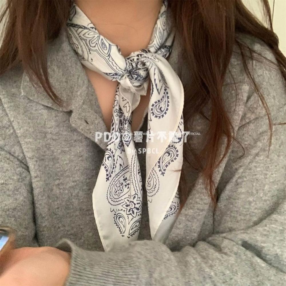 Imanchen仿真絲復古疊穿腰果花絲巾裝飾秋冬新款髮帶百搭時尚領巾方巾圍巾