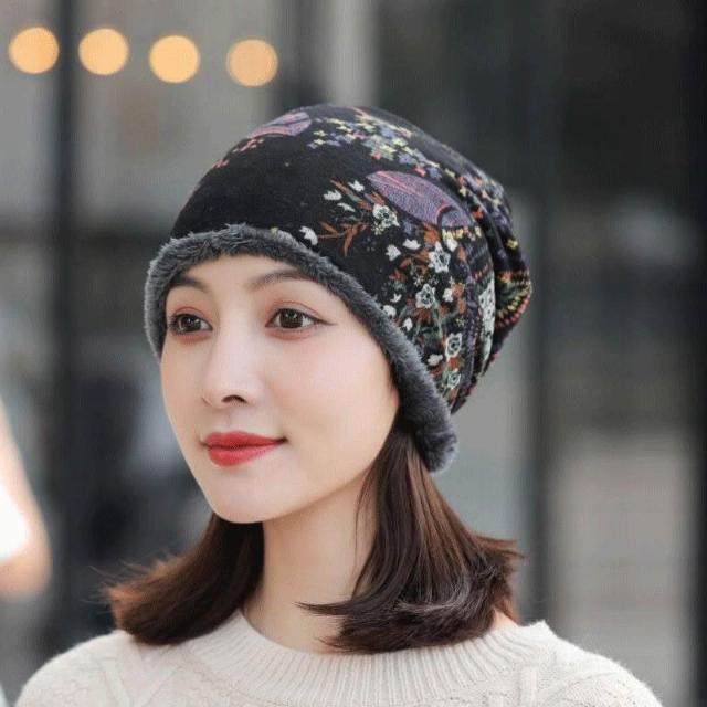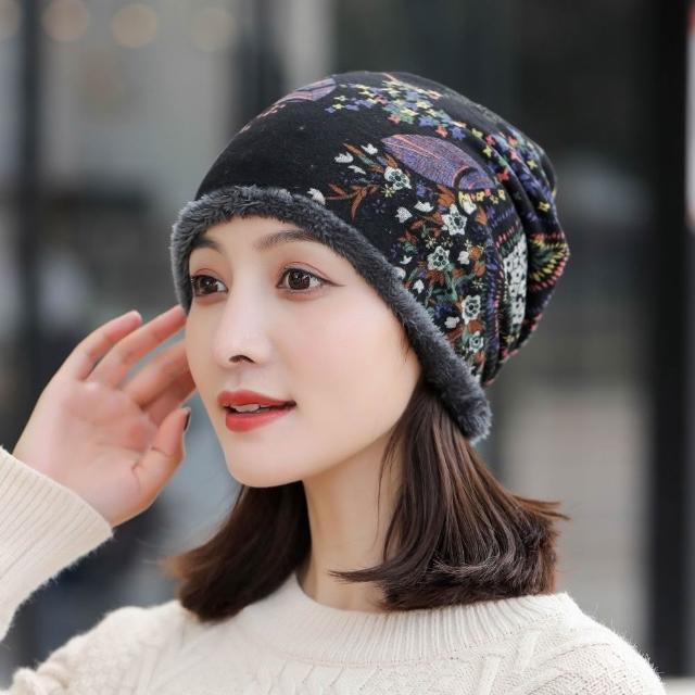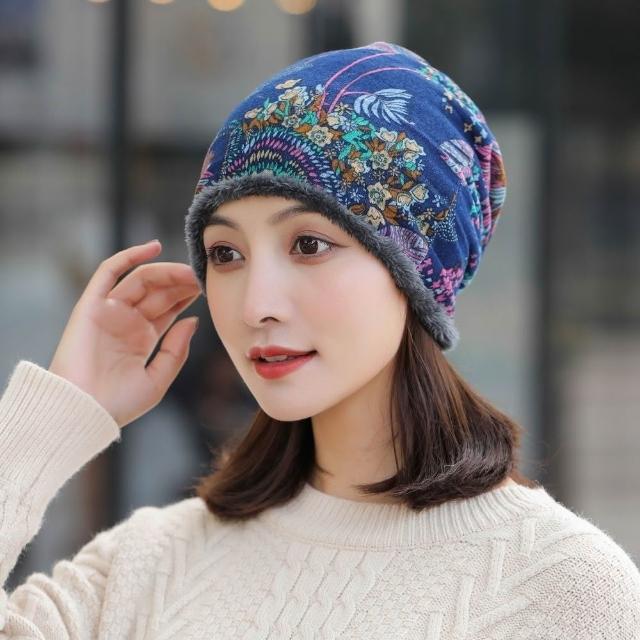 Imanchen帽子女韓版秋冬時尚加絨保暖套頭帽堆睡帽韓版潮流包頭帽學生帽