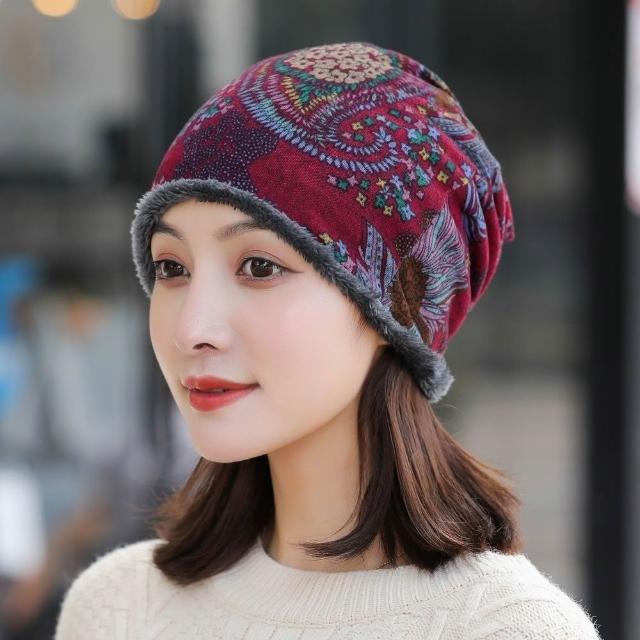 Imanchen帽子女韓版秋冬時尚加絨保暖套頭帽堆睡帽韓版潮流包頭帽學生帽
